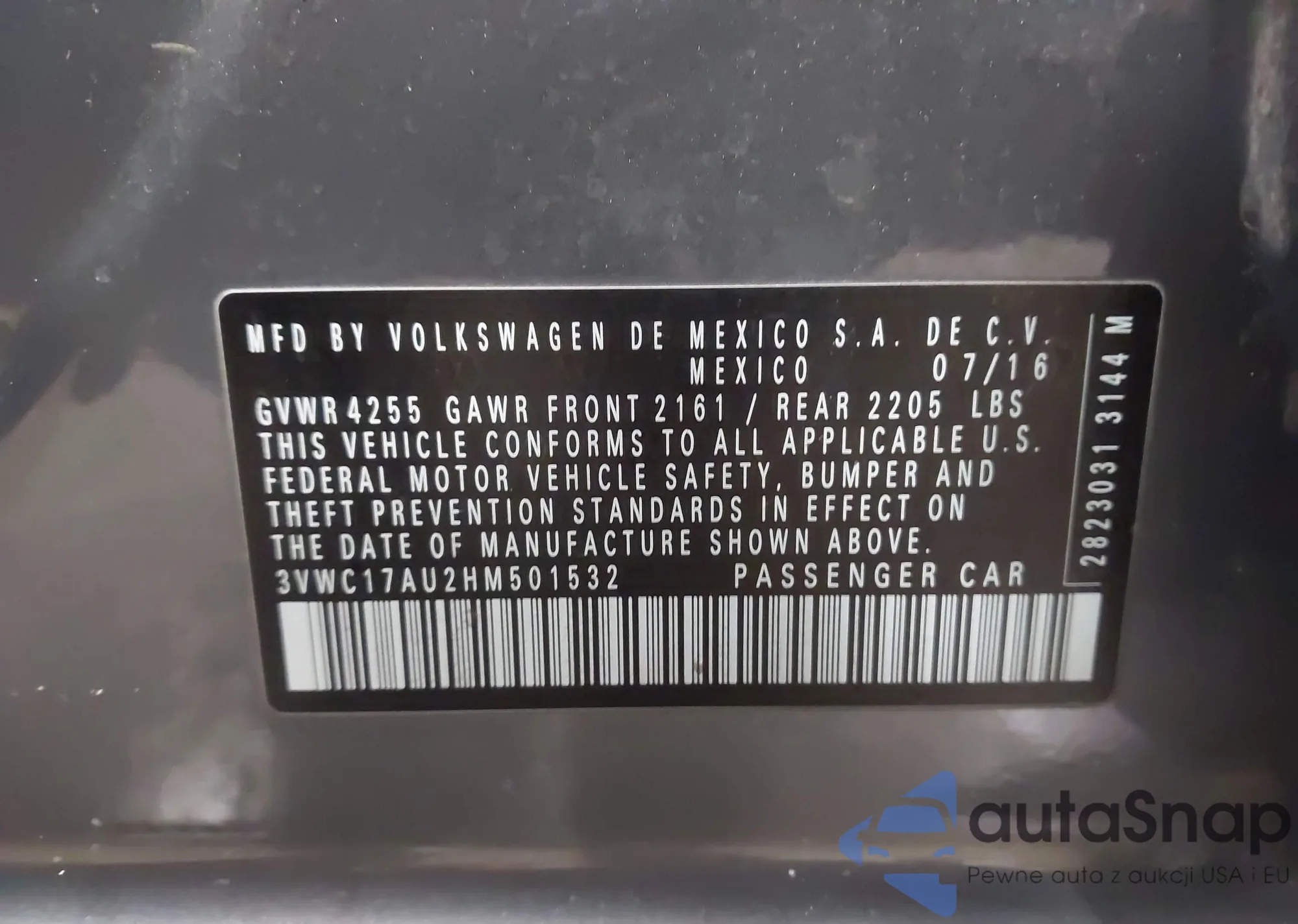 • VIN 3VWC17AU2HM501532