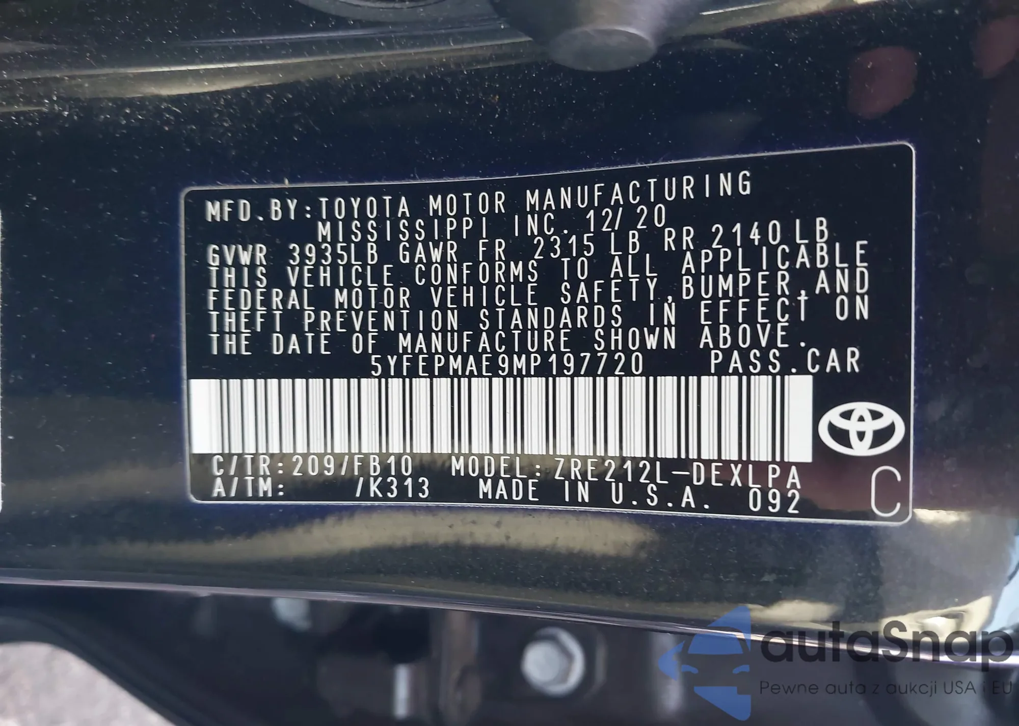 • VIN 5YFEPMAE9MP197720