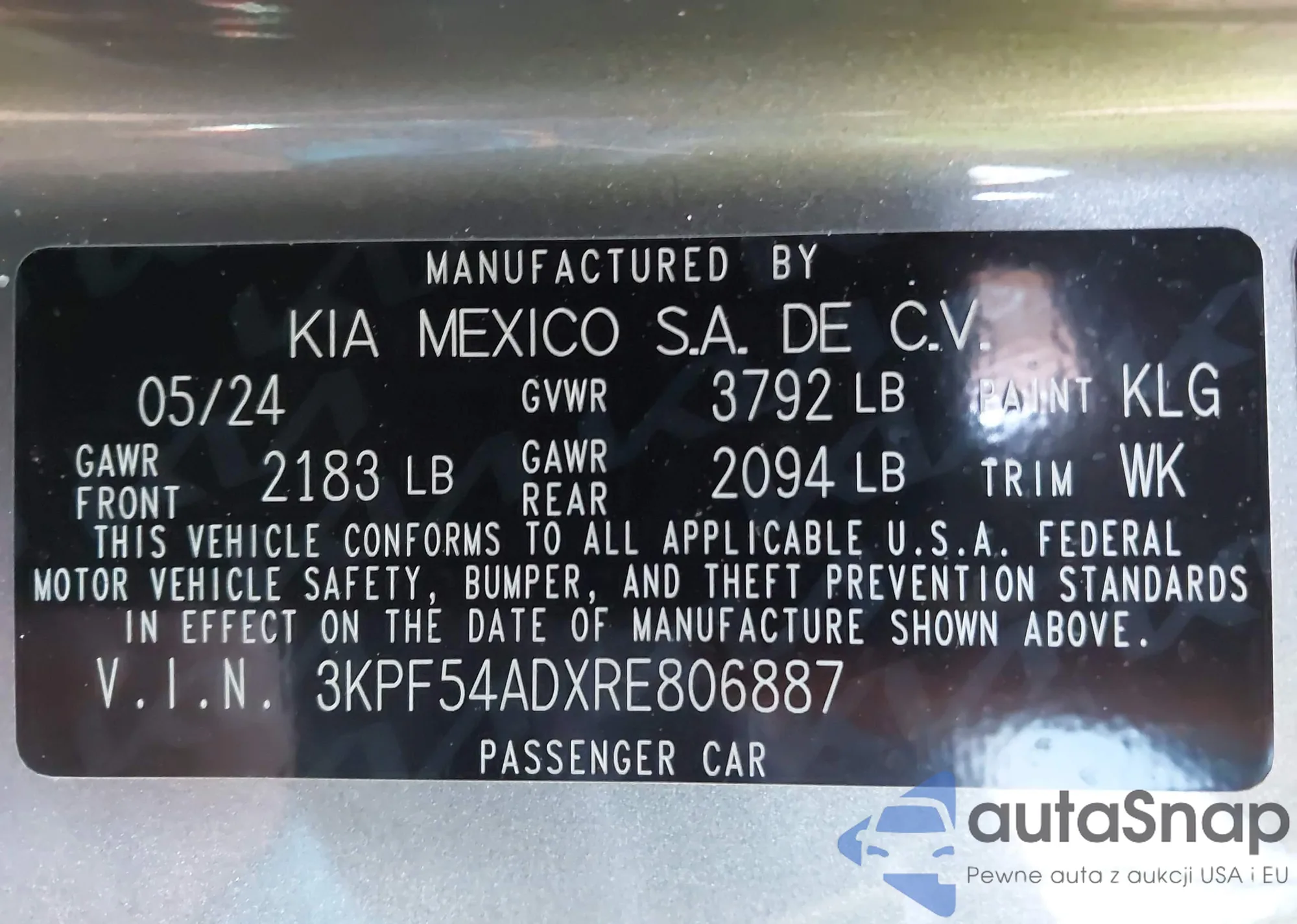 LOT: 43499576 VIN: 3KPF54ADXRE806887