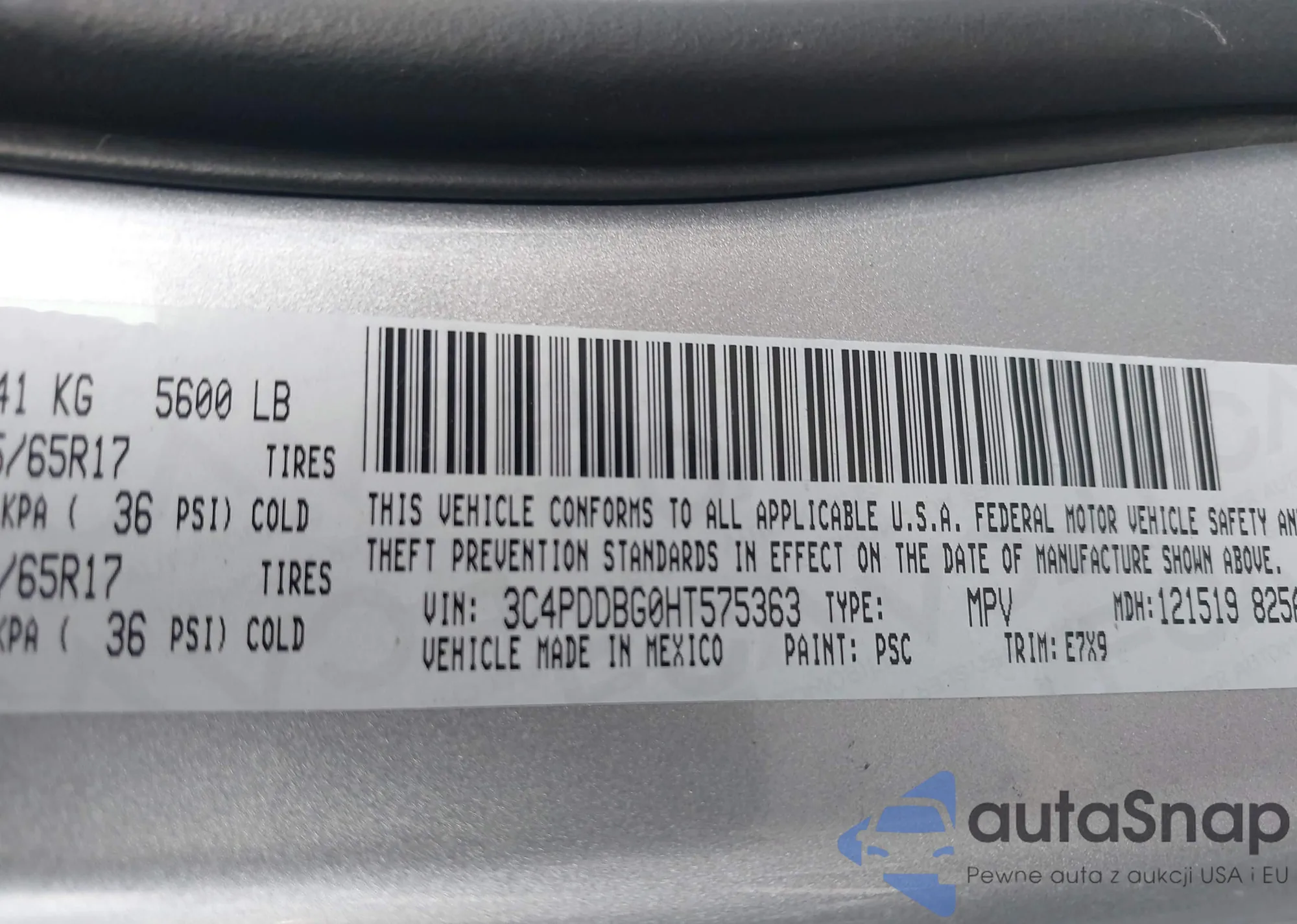 LOT: 43805701 VIN: 3C4PDDBG0HT575363