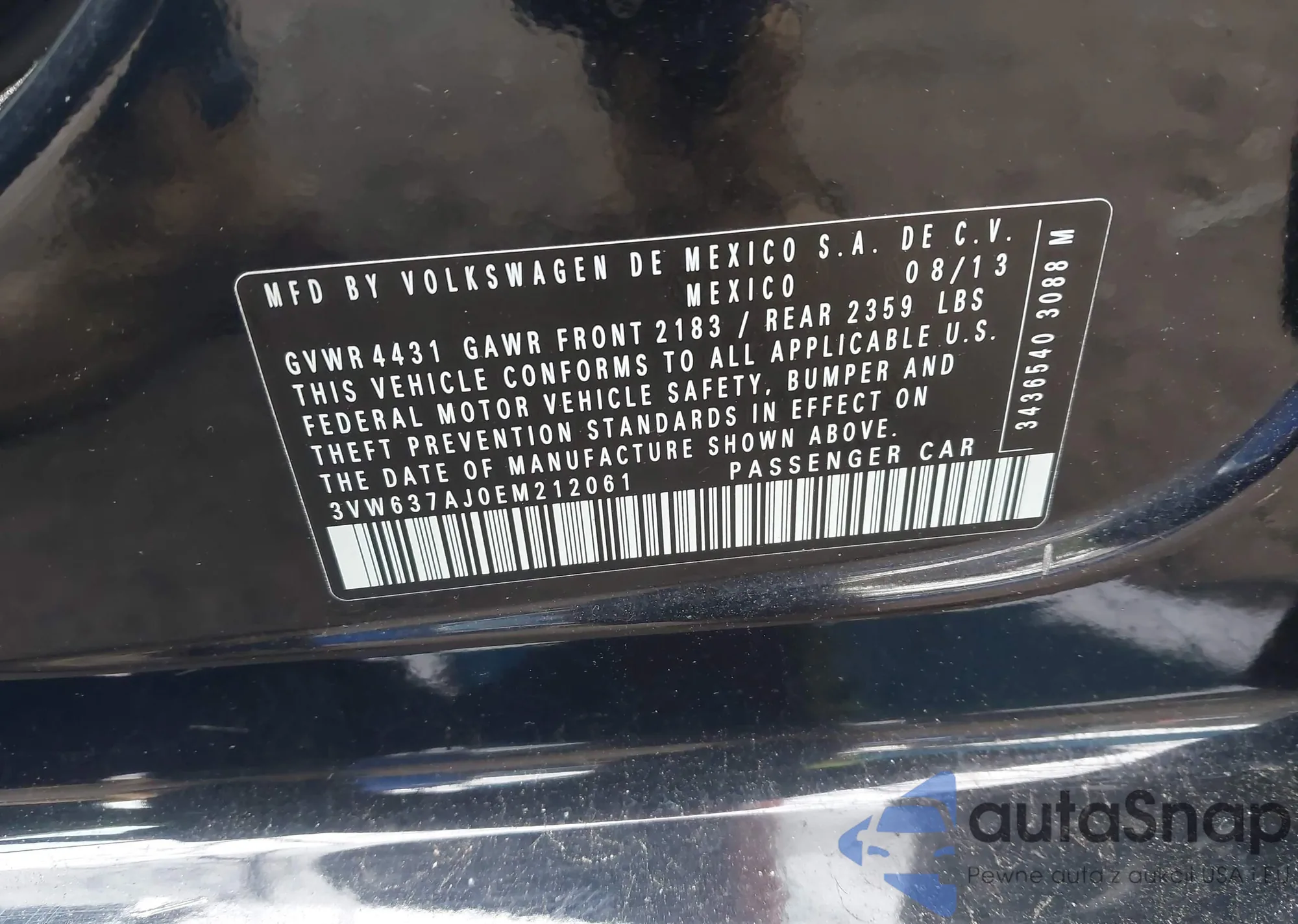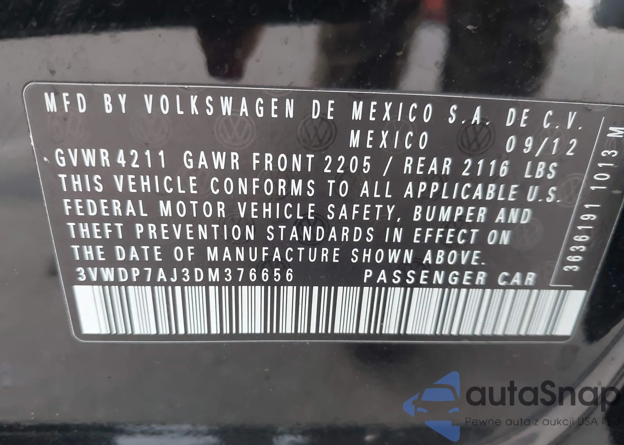• VIN 3VWDP7AJ3DM376656