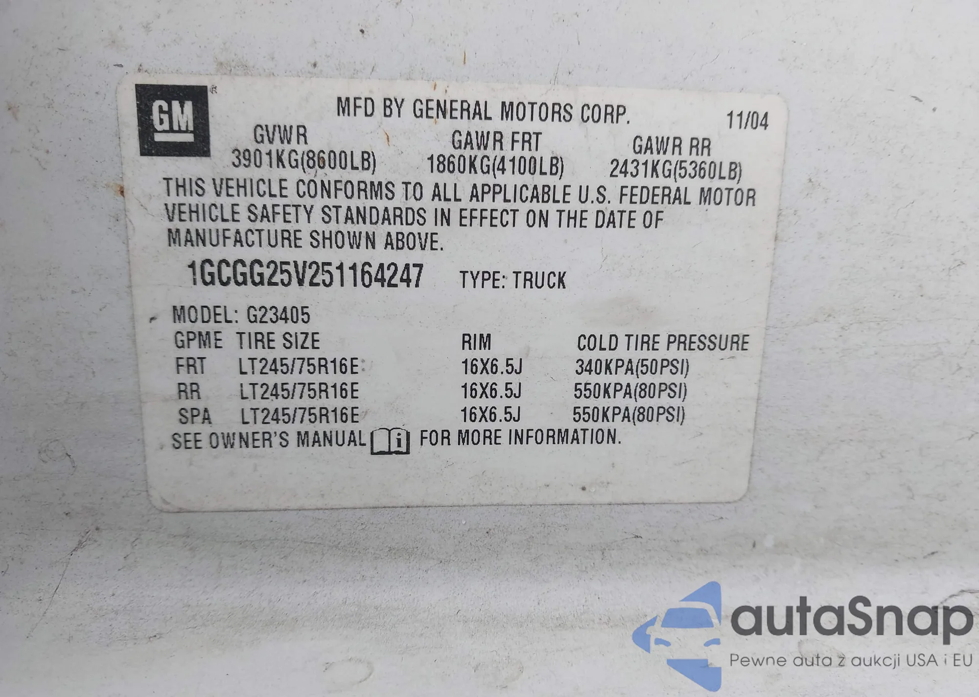 • VIN 1HGCP2F35BA134264