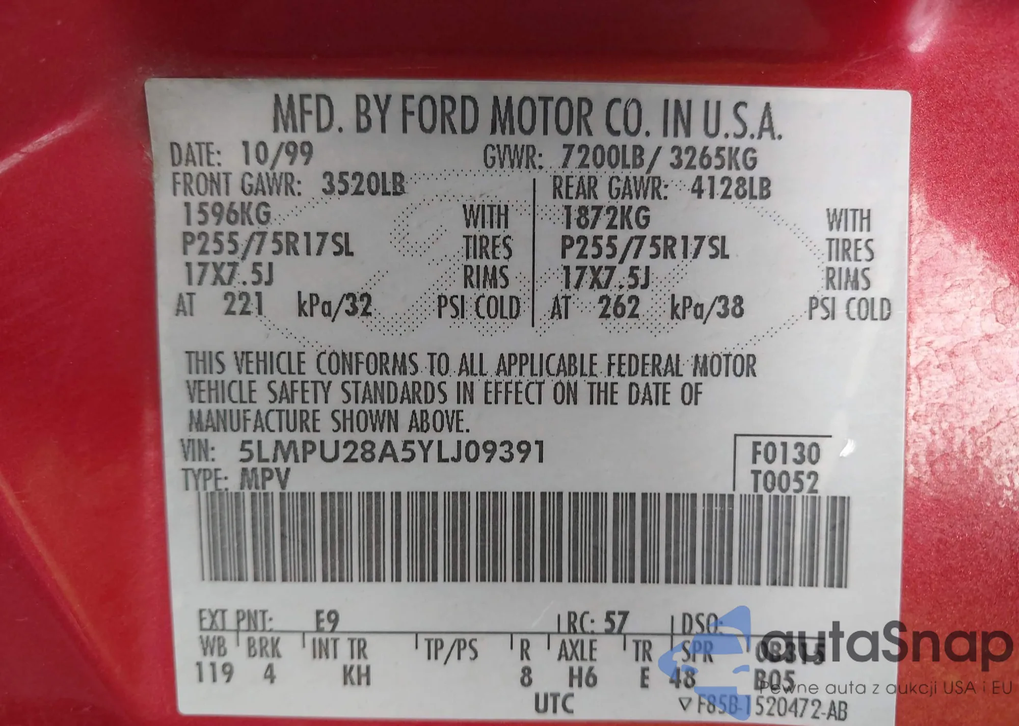 LOT: 43896595 VIN: 1FMYU93176KB66332