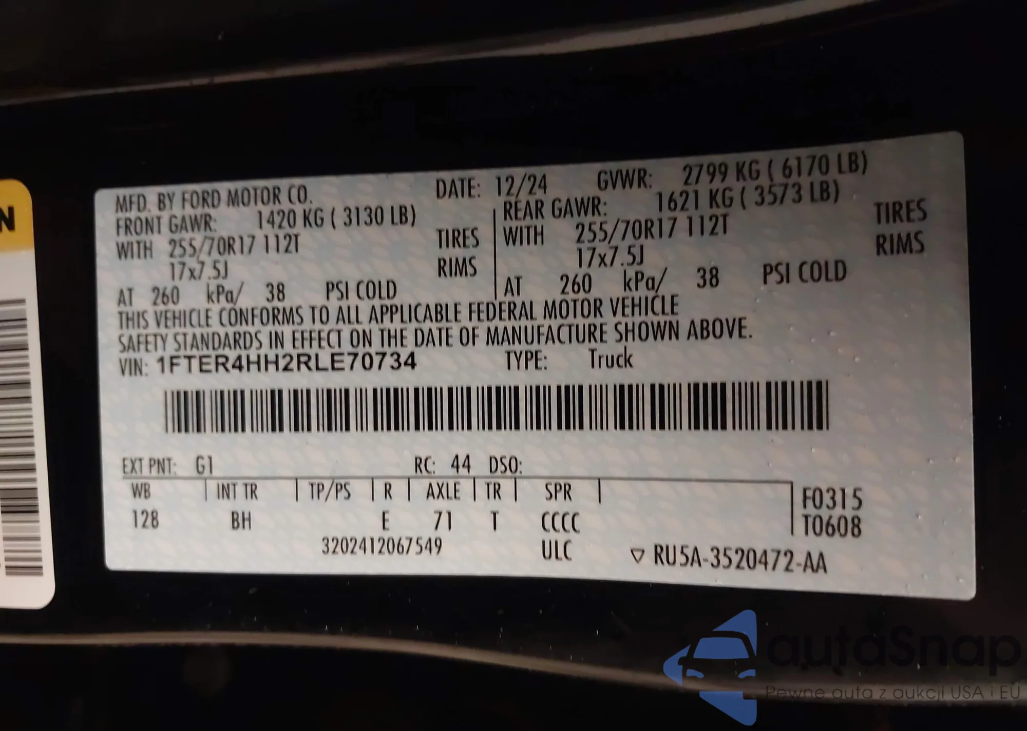 LOT: 43808650 VIN: 1FTER4HH2RLE70734