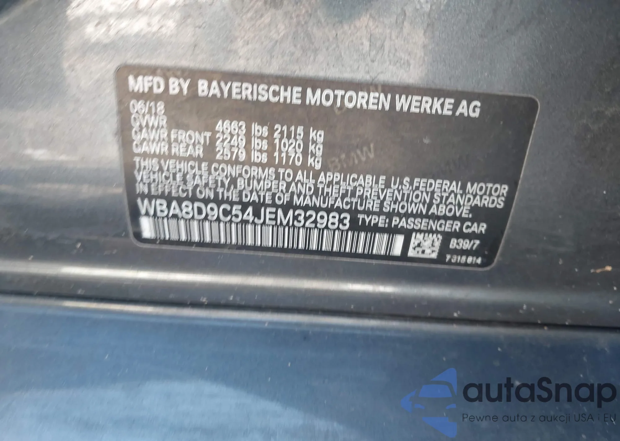 • VIN WBA8D9C54JEM32983