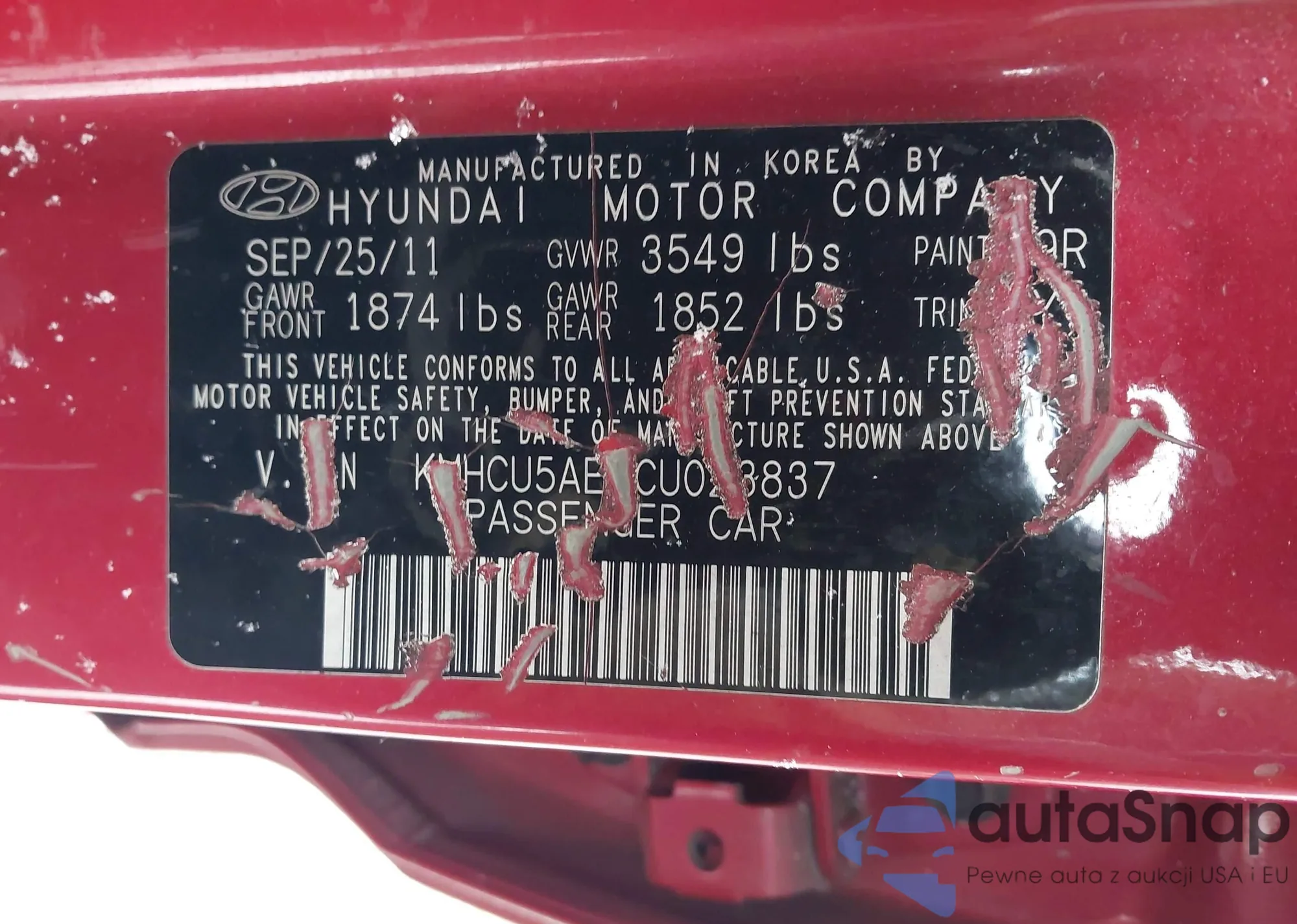 • VIN KMHCU5AE1CU023837
