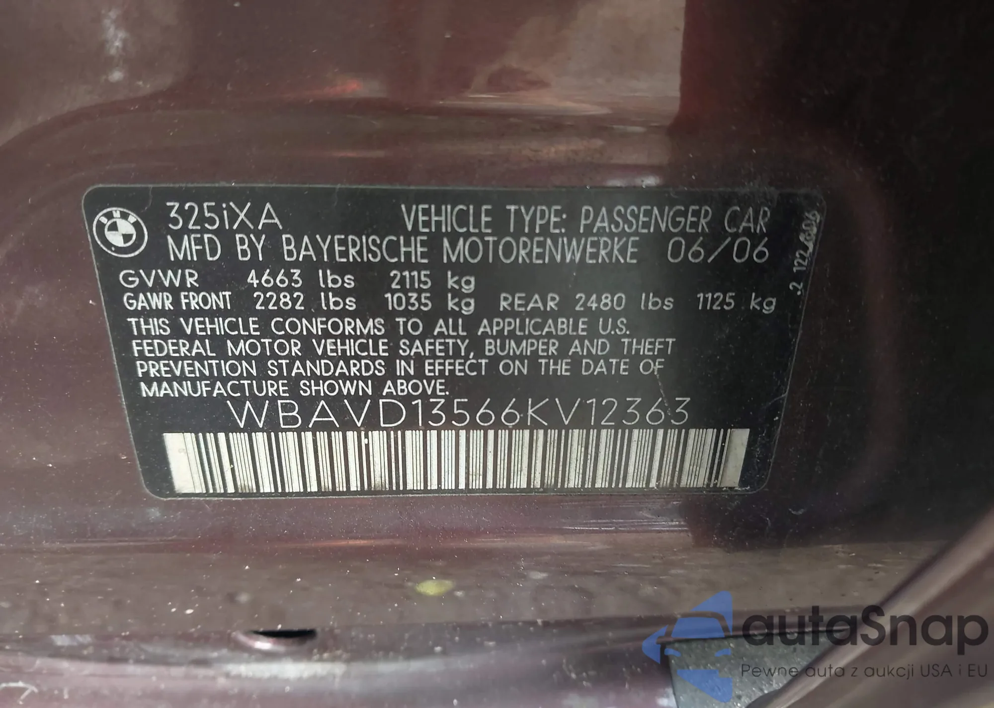 LOT: 43507553 VIN: WBAVD13566KV12363