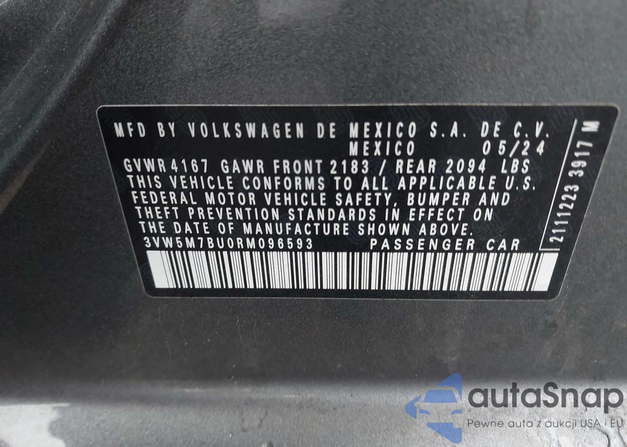 • VIN 3VW5M7BU0RM096593