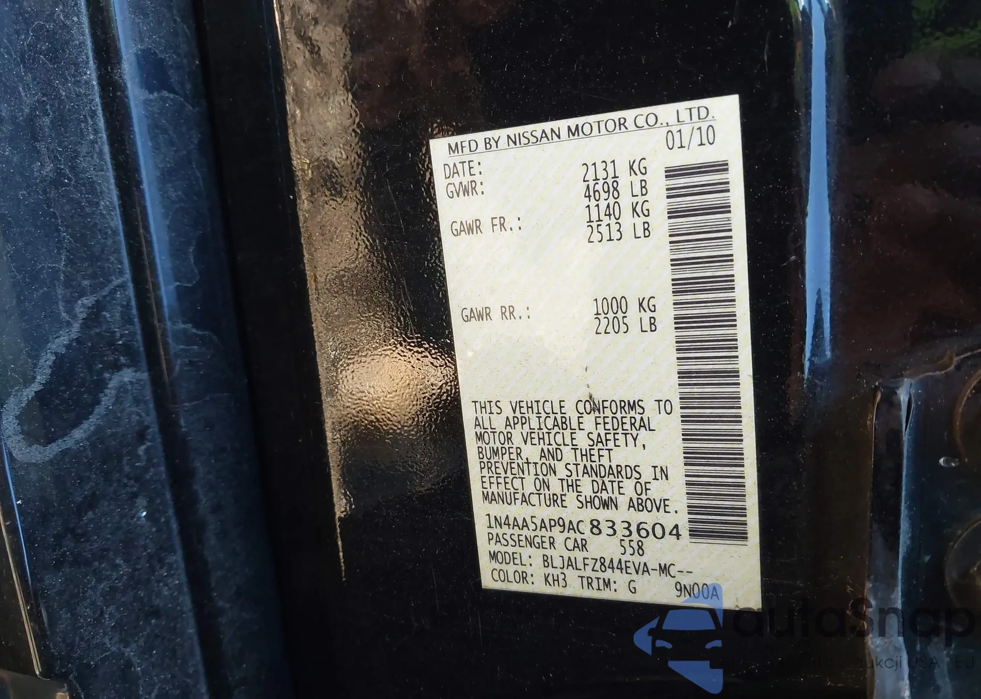• VIN 1N4AA5AP9AC833604