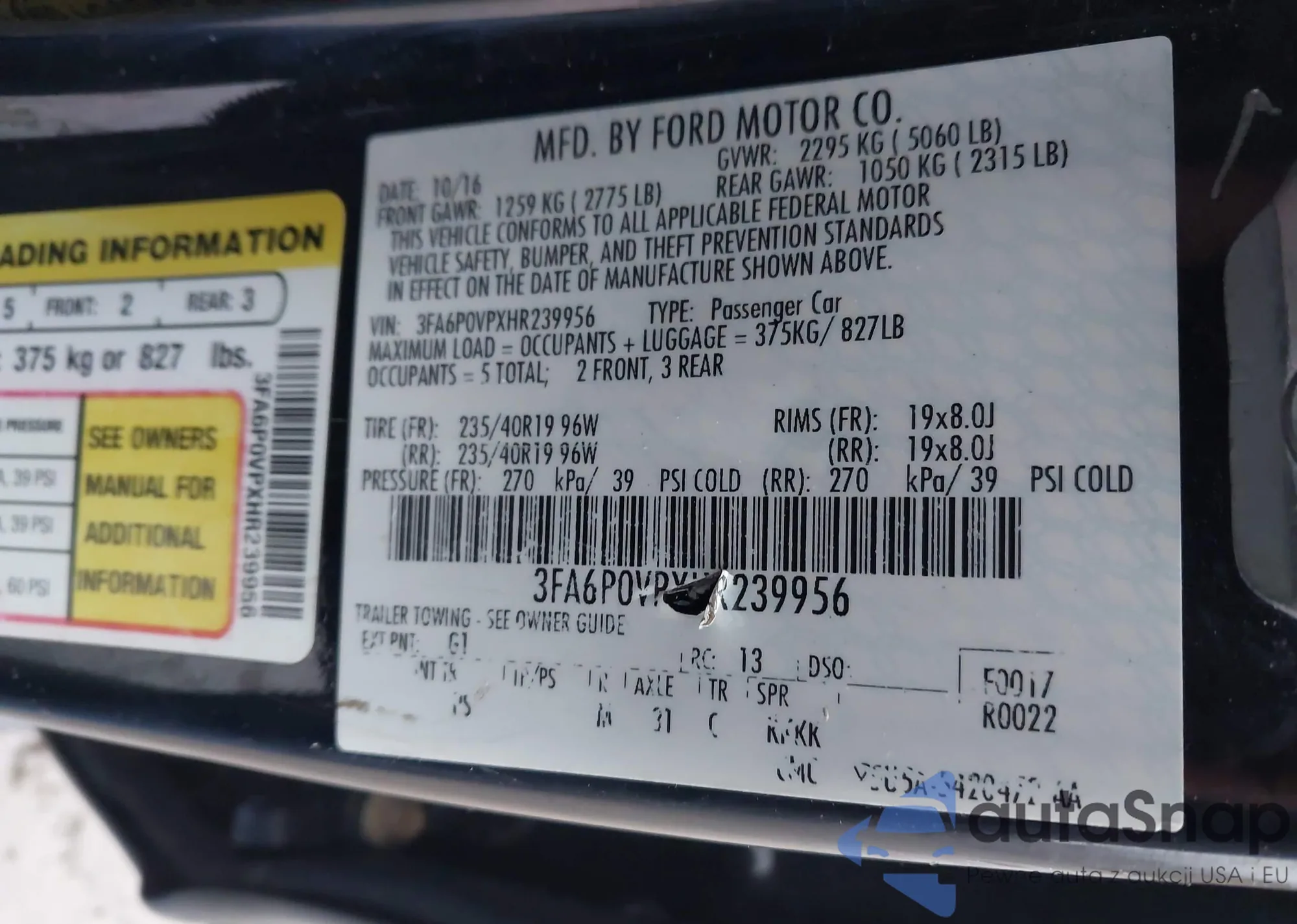 LOT: 43668296 VIN: 3FA6P0HD8HR362382