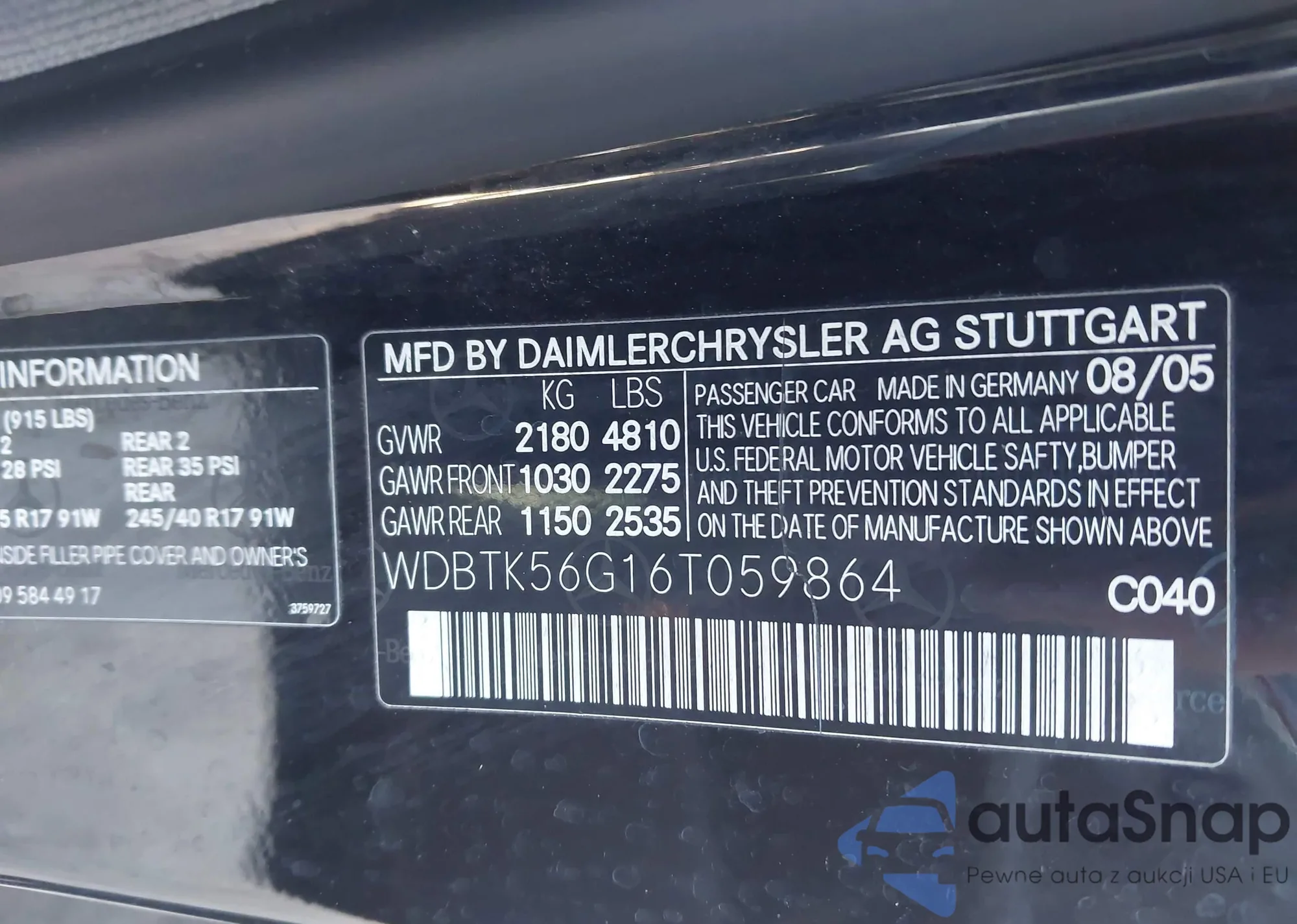 LOT: 43943943 VIN: WDBTK56G16T059864
