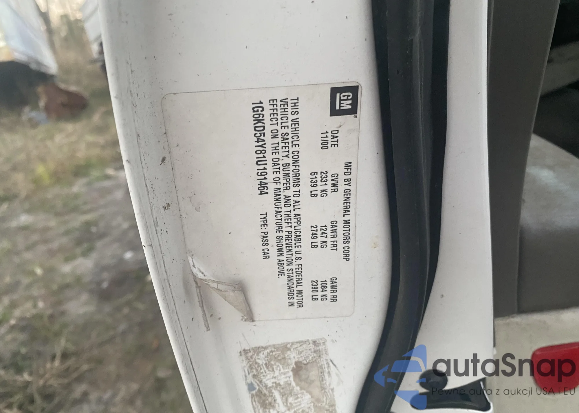 • VIN 1G6KD54Y81U191464