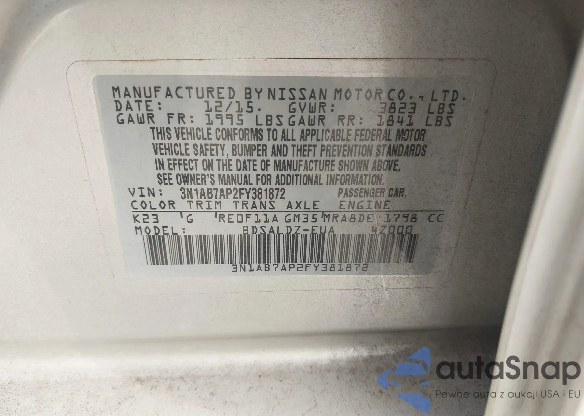 LOT: 43838713 VIN: 3N1AB7AP2FY381872