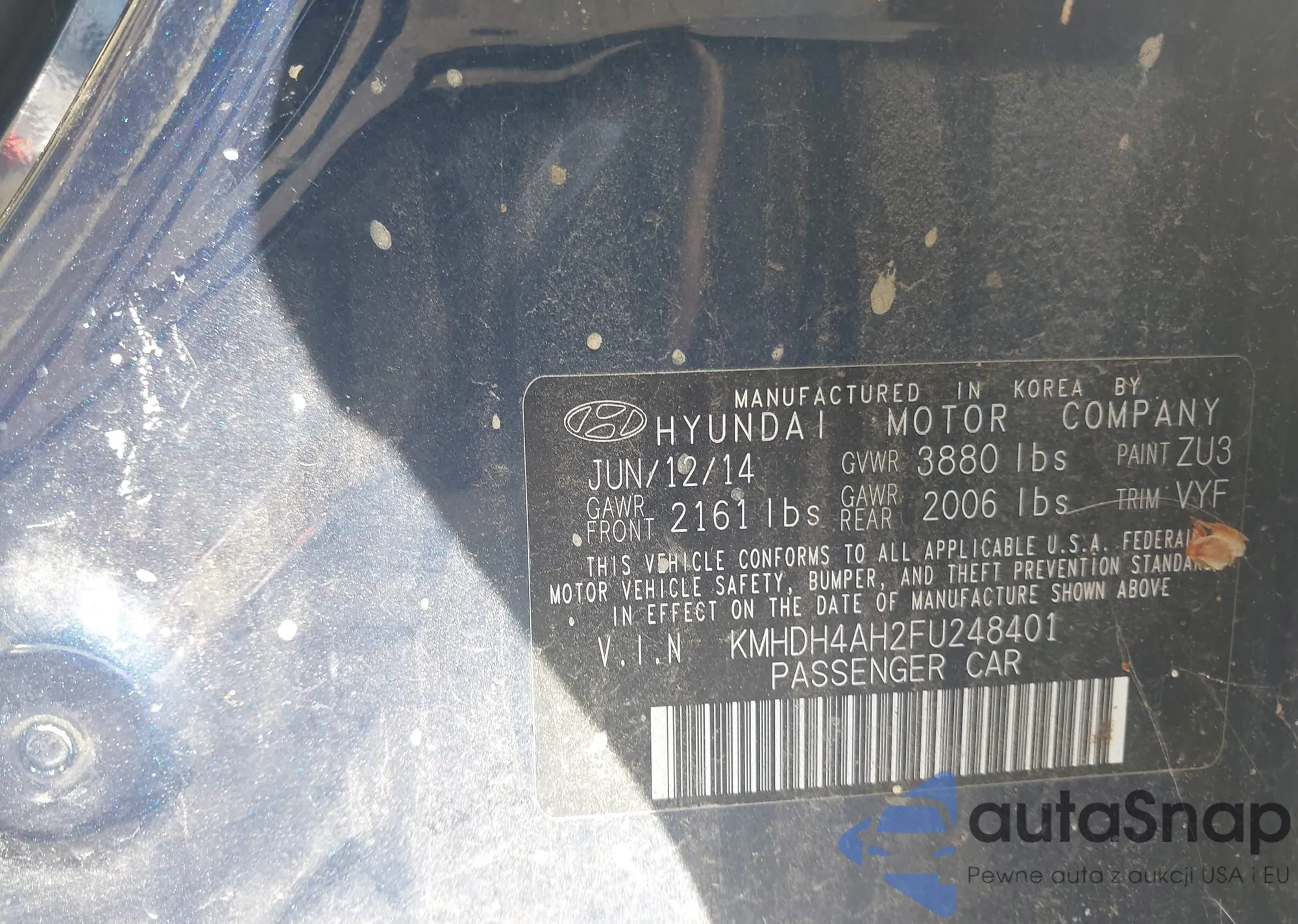 LOT: 43311519 VIN: KMHDH4AH2FU248401
