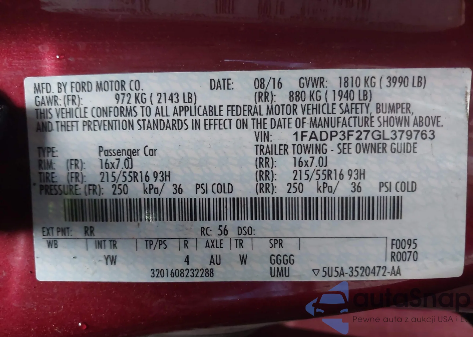 LOT: 42973433 VIN: 1FAHP56S31A152117