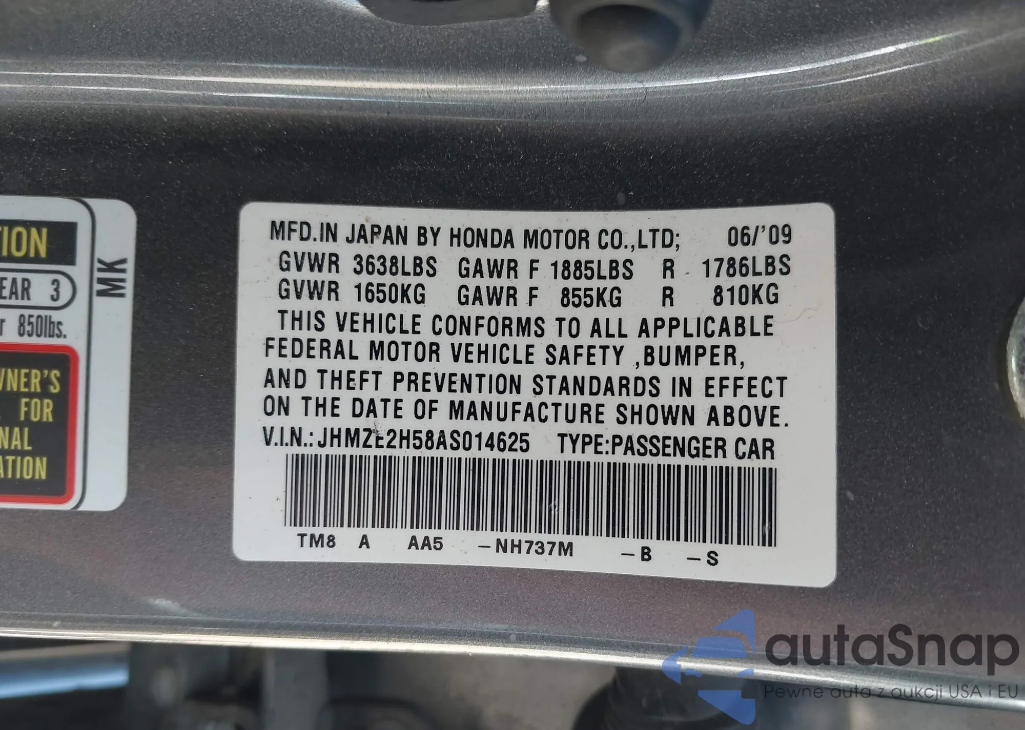 LOT: 43230668 VIN: 19XZE4F55NE002540