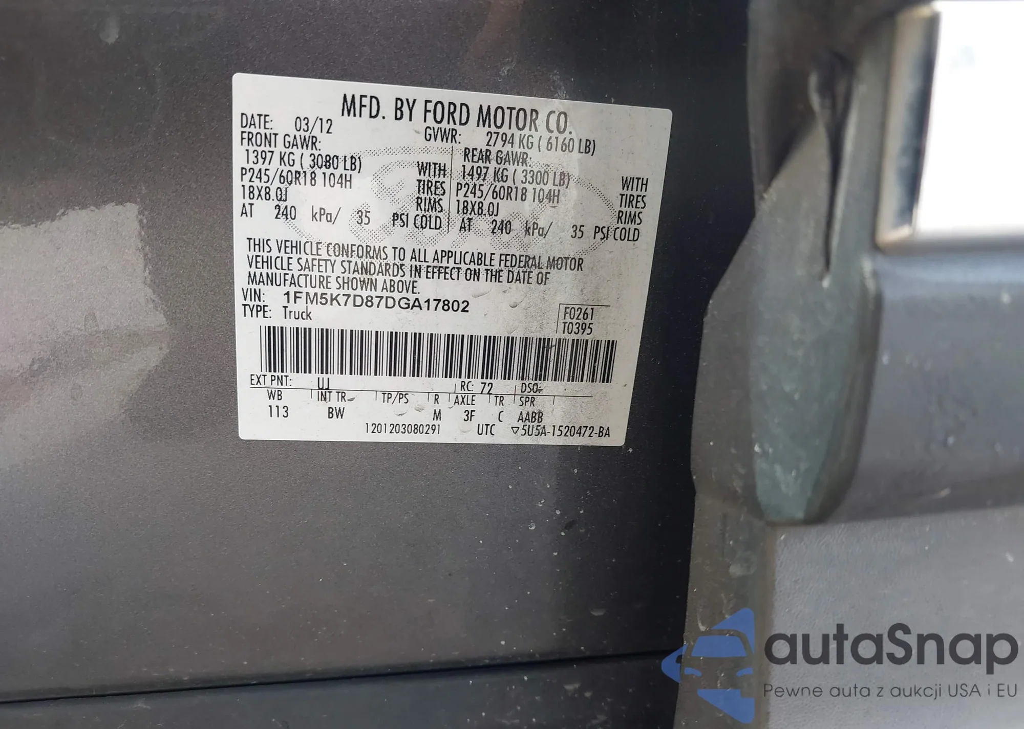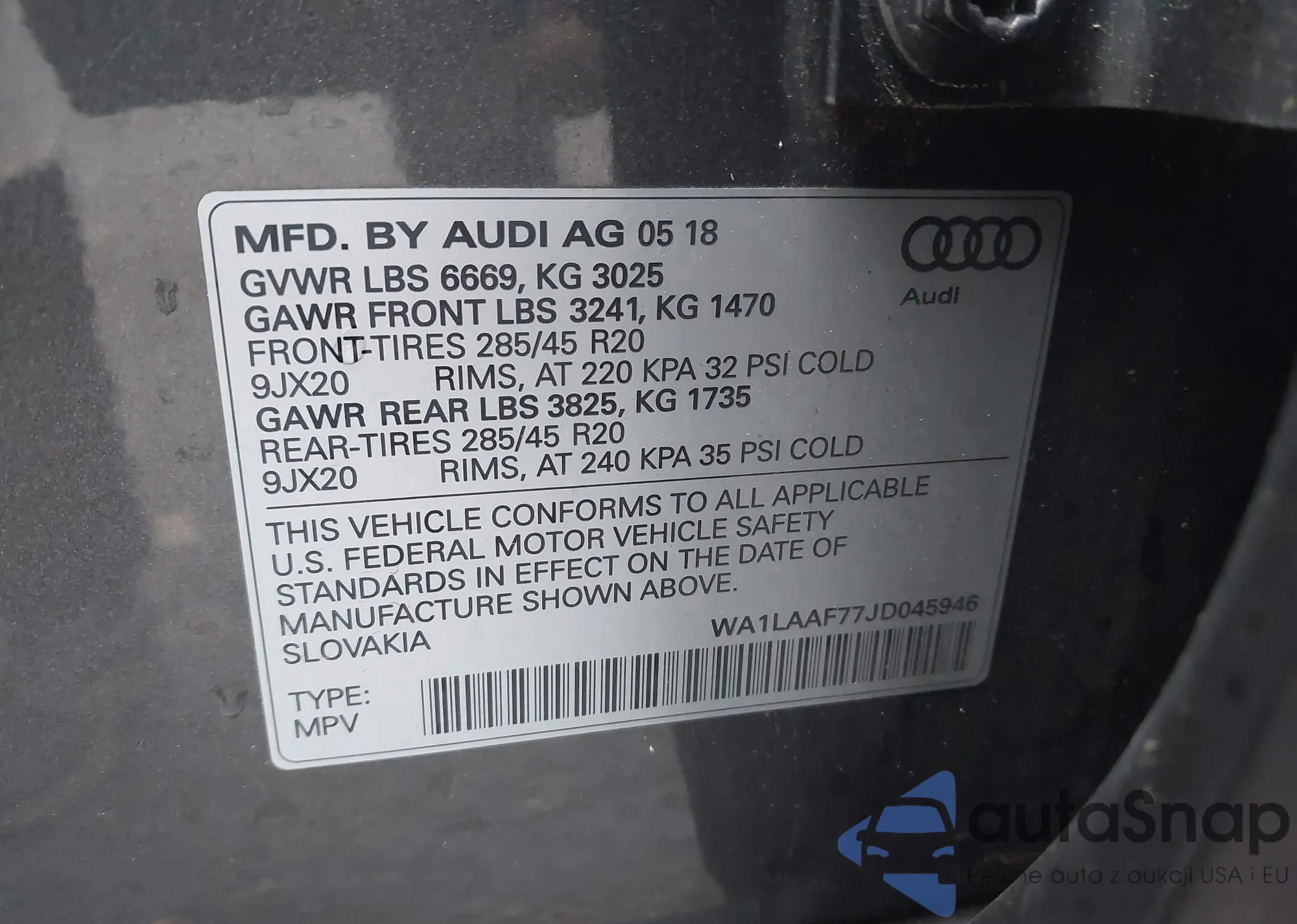 LOT: 43424491 VIN: WA1LAAF77JD045946