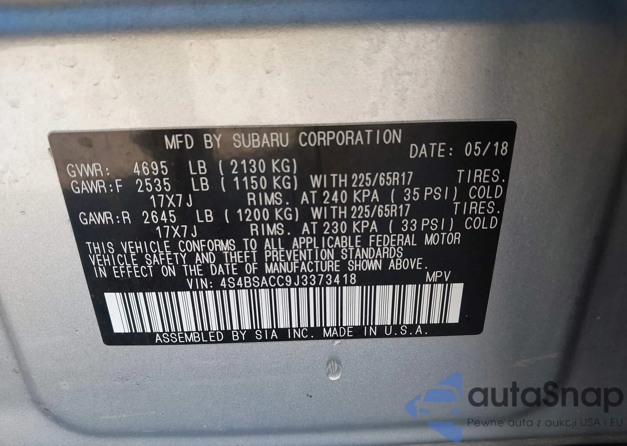 • VIN 4S4BSACC9J3373418