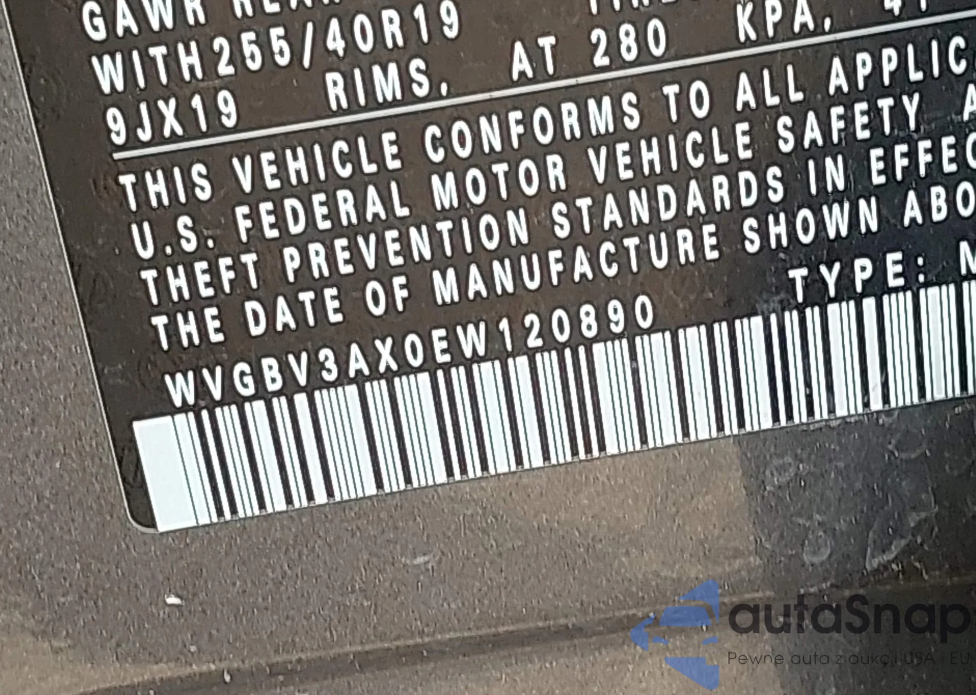 • VIN WVGBV3AX0EW120890