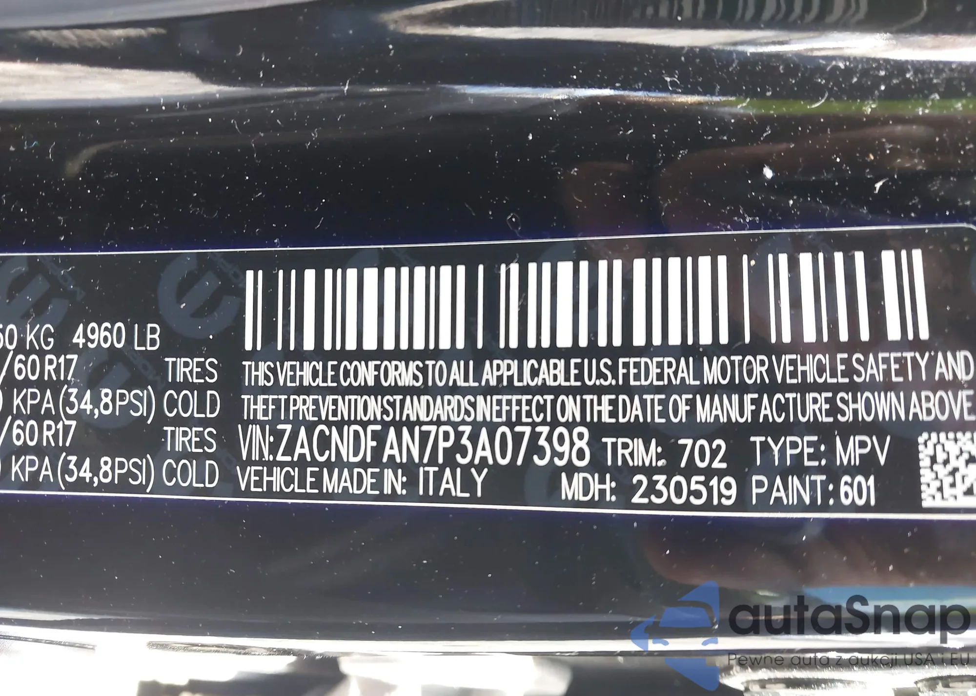 • VIN ZACNDFAN7P3A07398