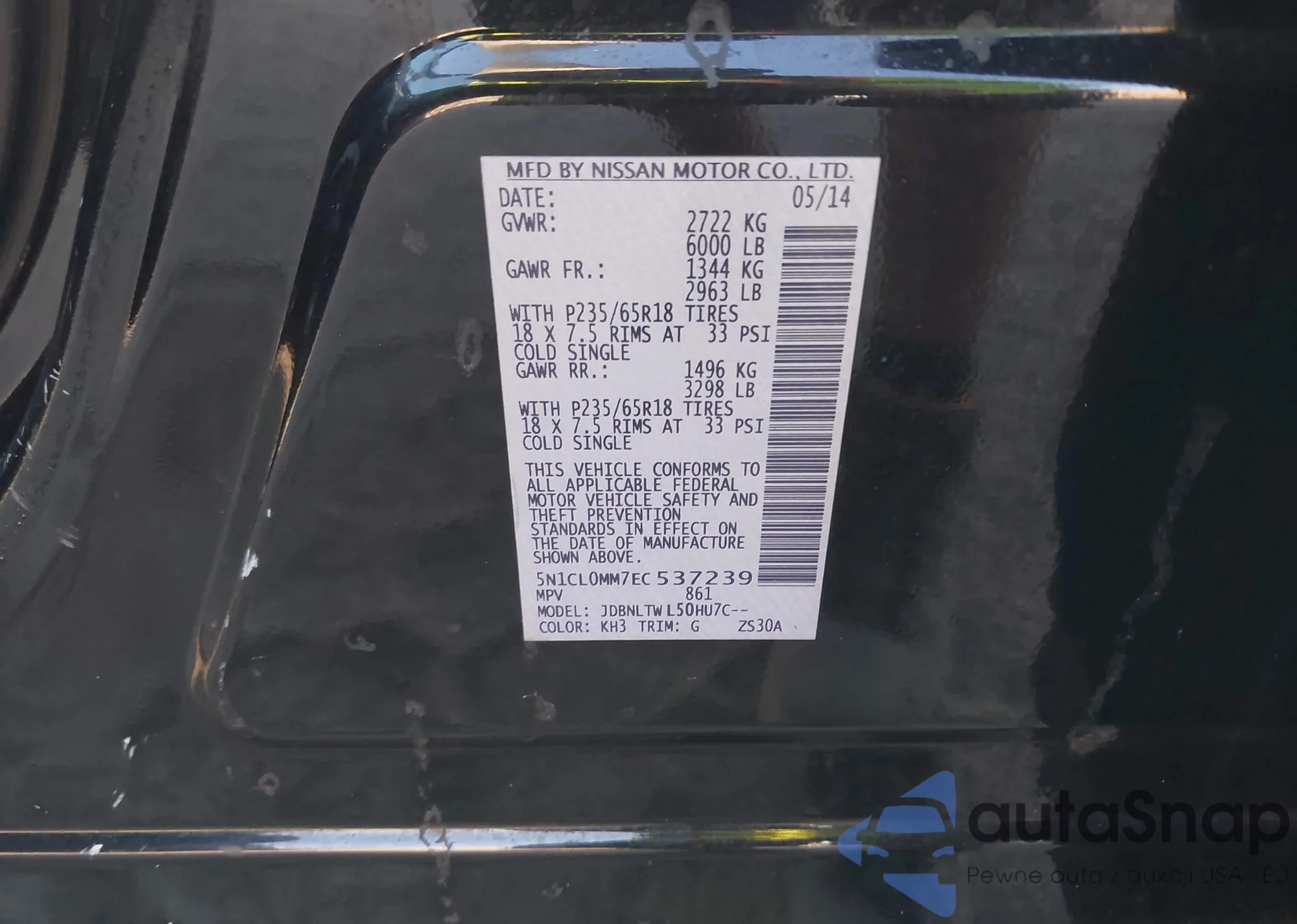 LOT: 43723084 VIN: 5N1CL0MM7EC537239