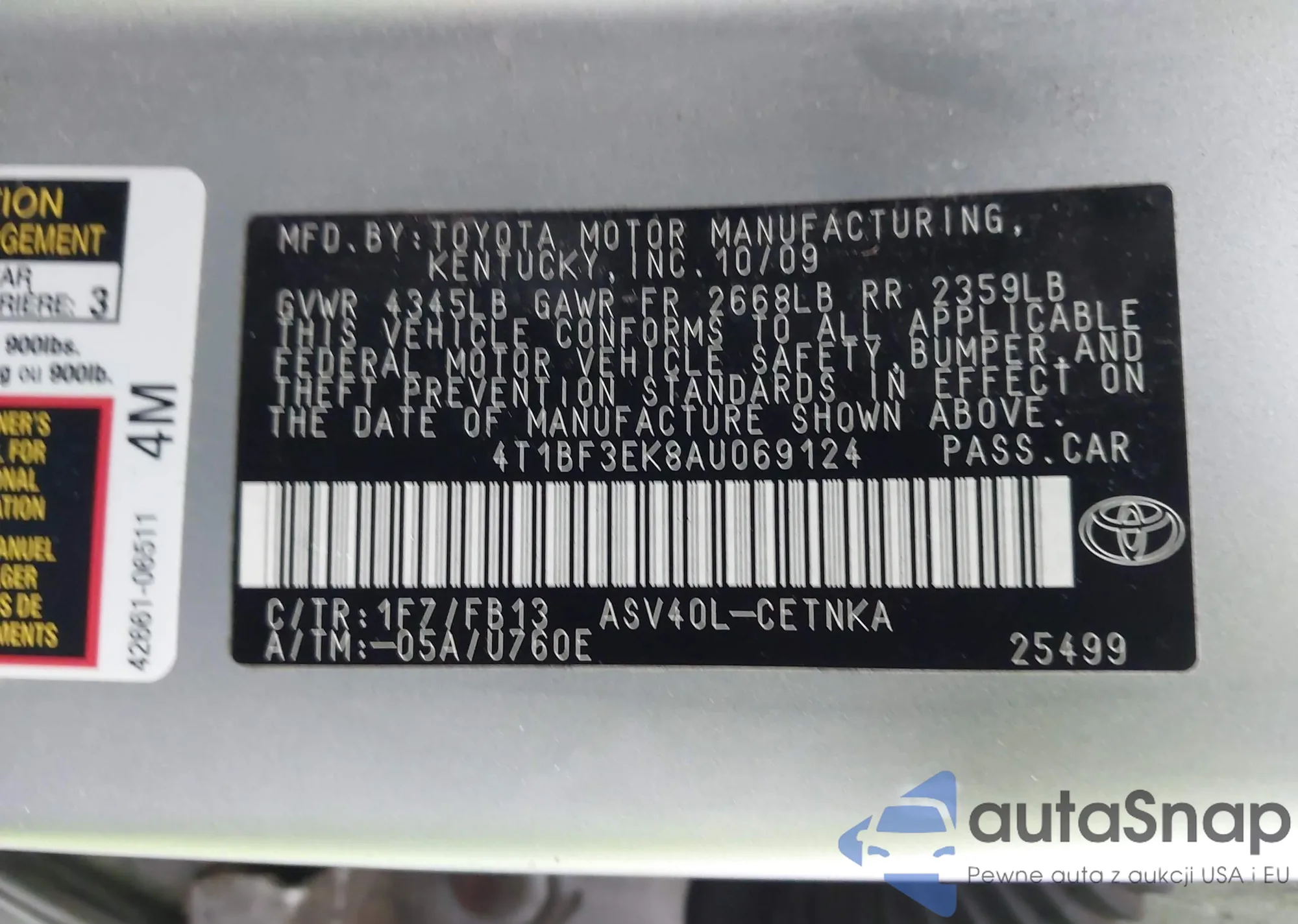 • VIN 4T1BF3EK8AU069124