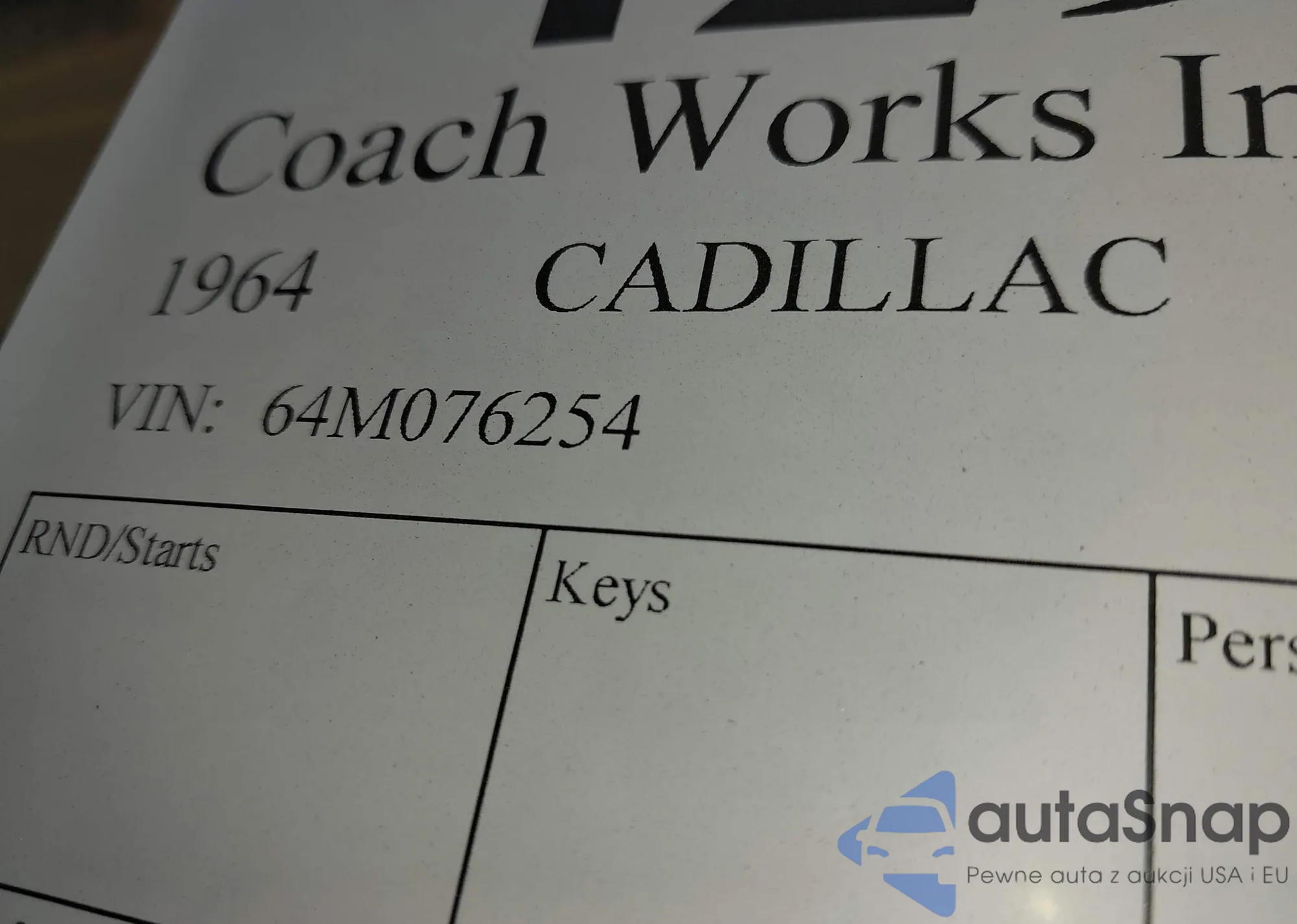 1964 Cadillac Fleetwood z USA, uszkodzony, nr VIN 64M076254