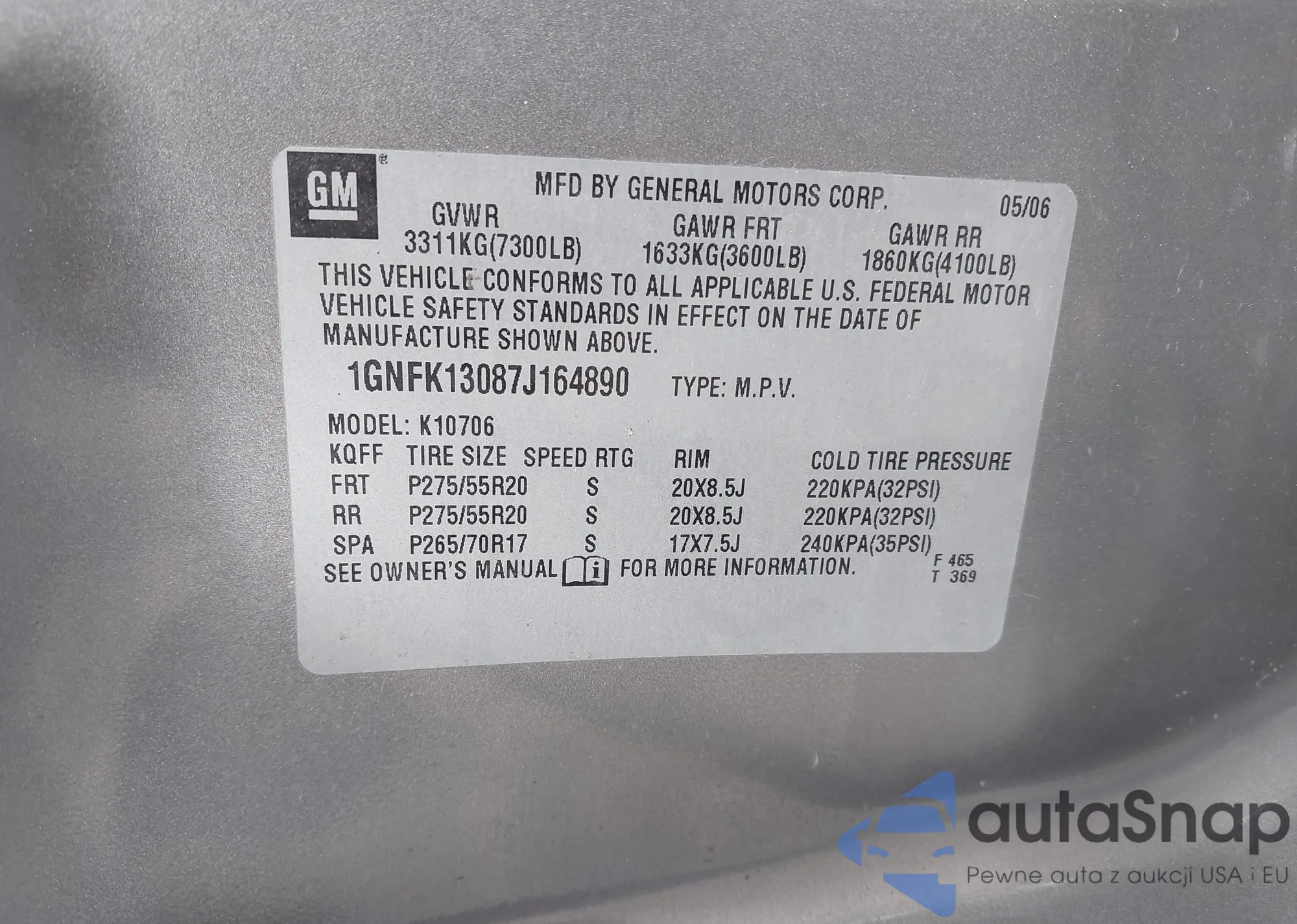 LOT: 43377874 VIN: 1GNFK13087J164890