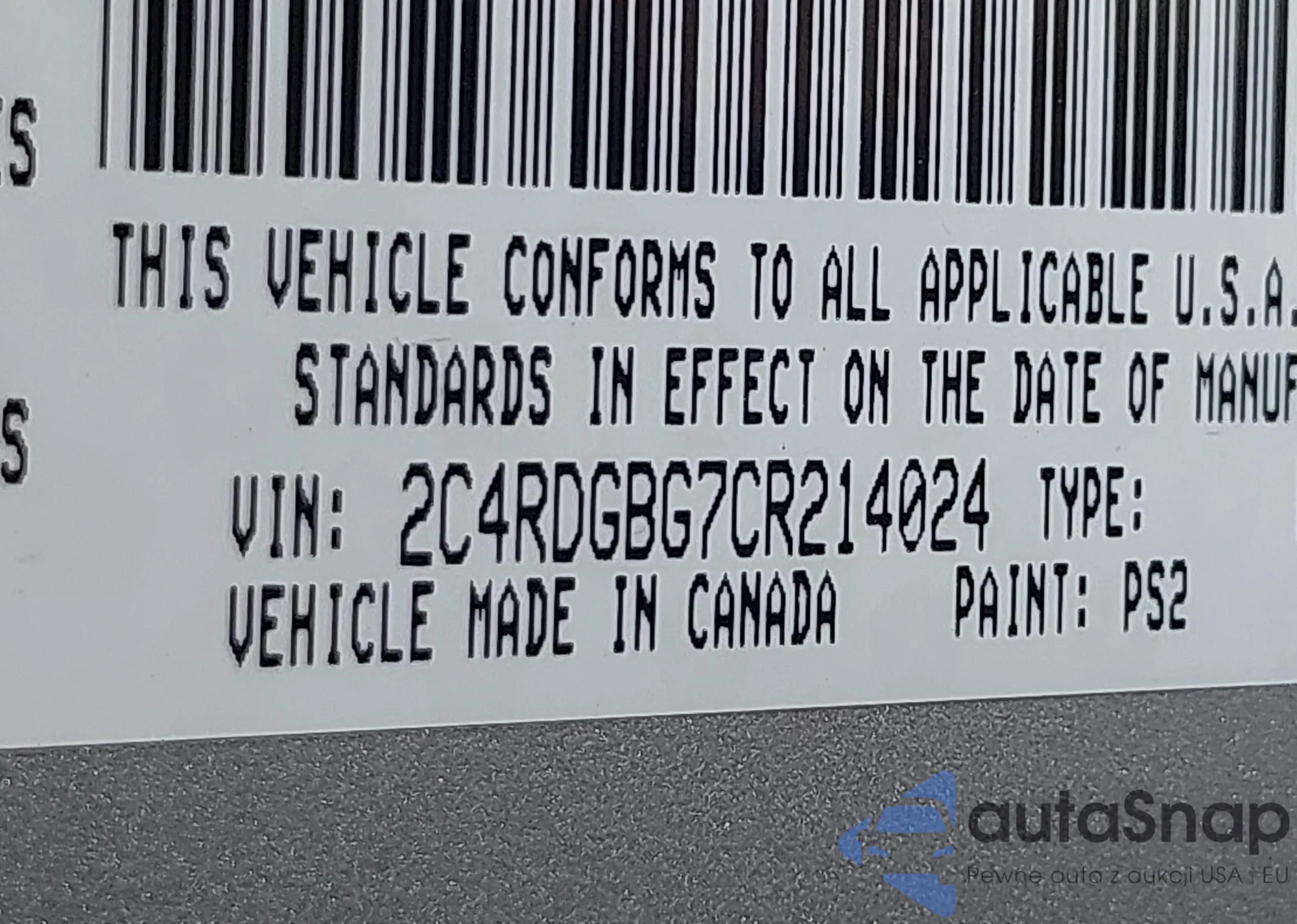 LOT: 42904853 VIN: 2C4RDGBG7CR214024