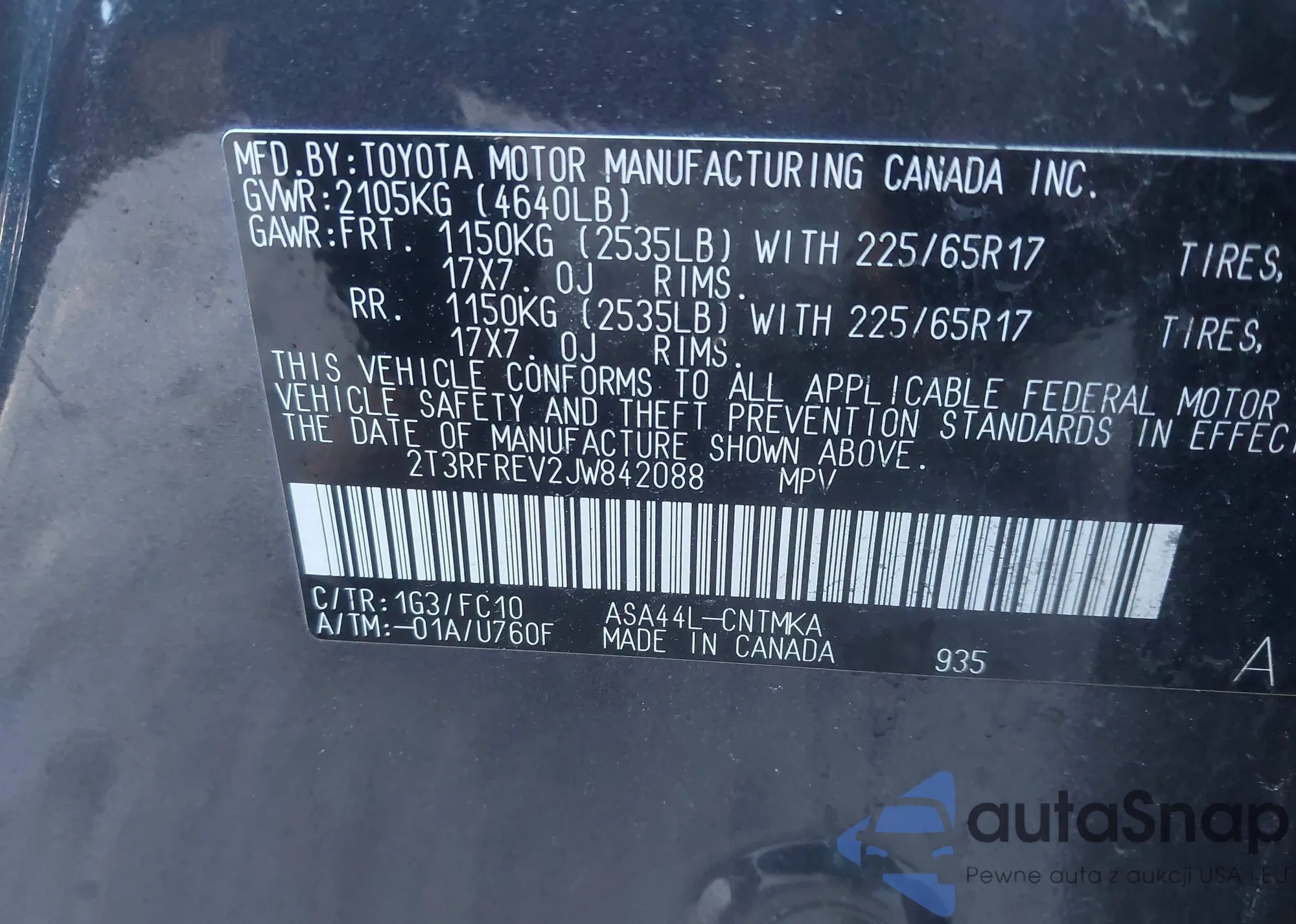 • VIN 2T3RFREV2JW842088