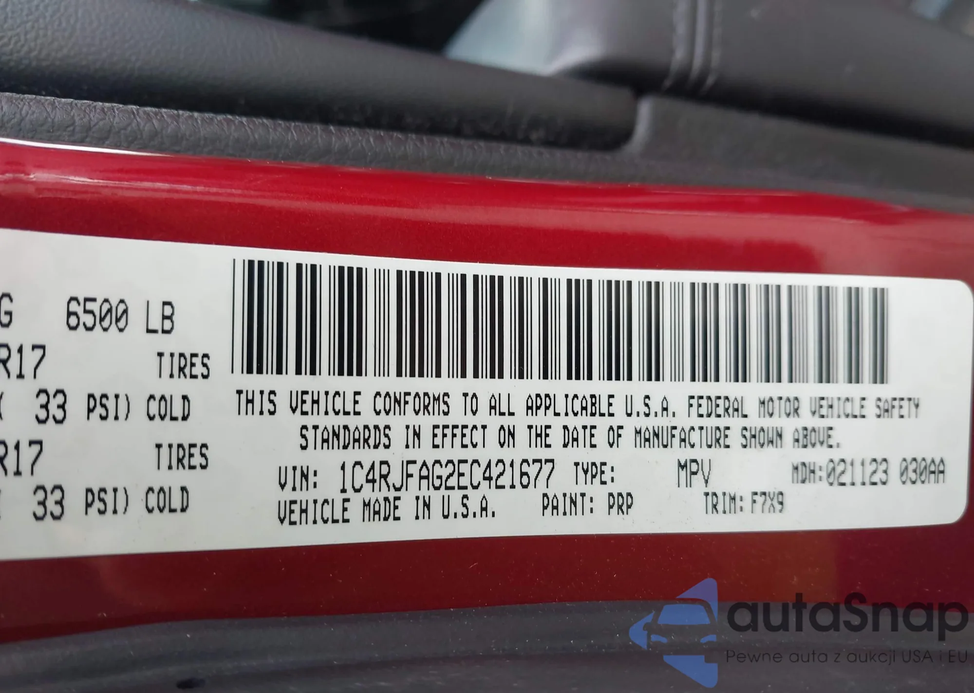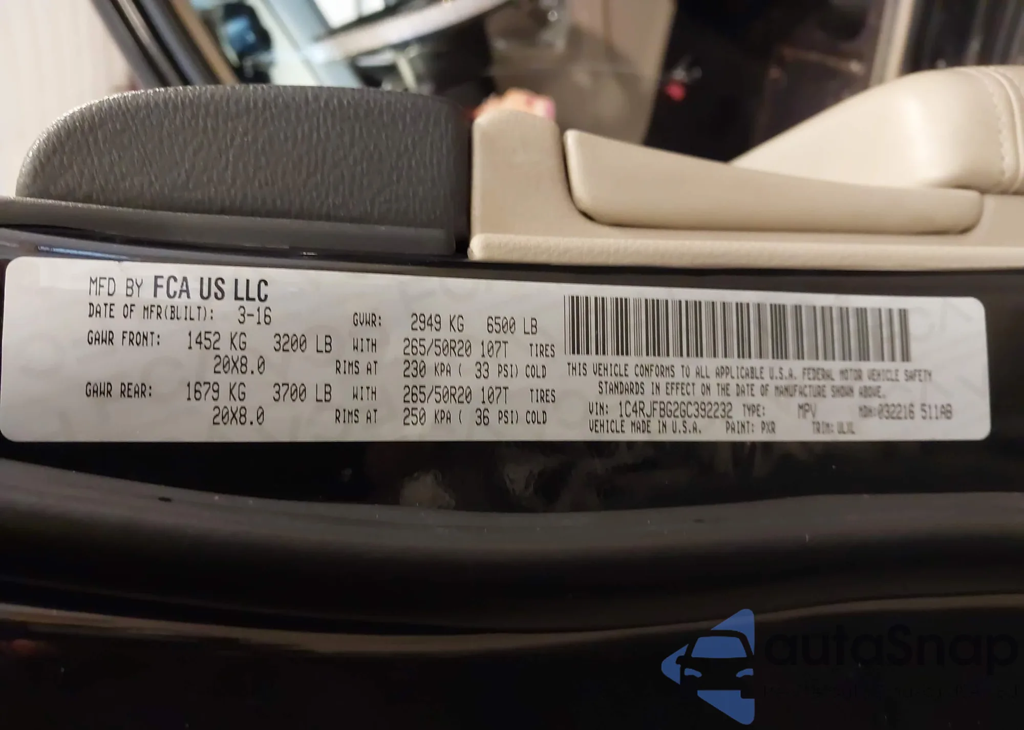 • VIN 1C4RJFBG2GC392232