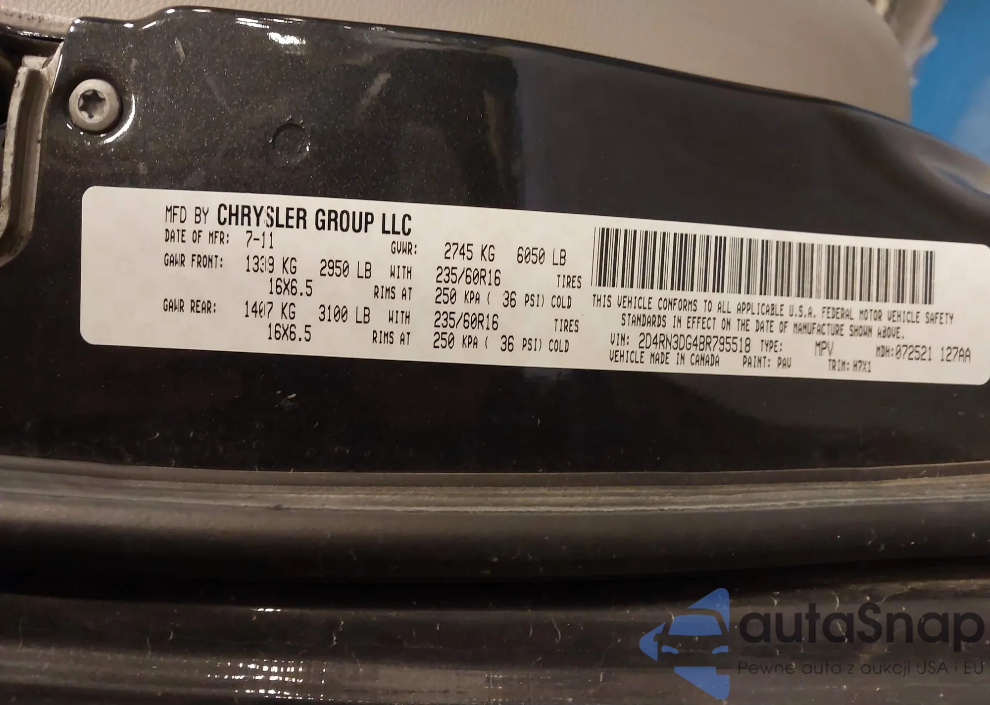 • VIN 2D4RN3DG4BR795518