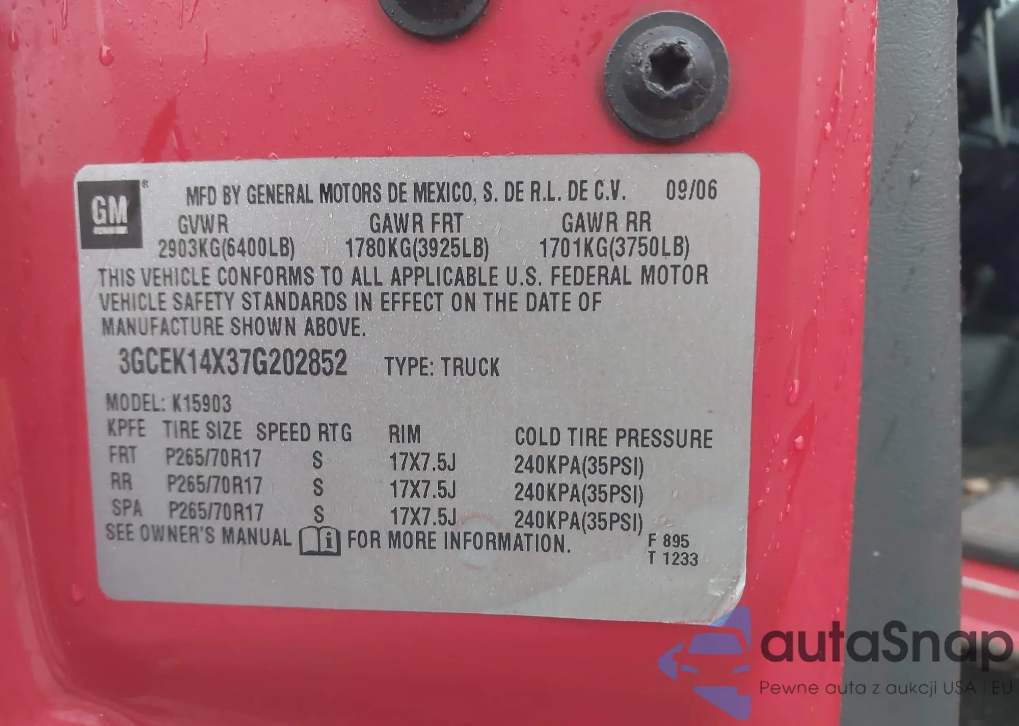 • VIN 3GCEK14X37G202852