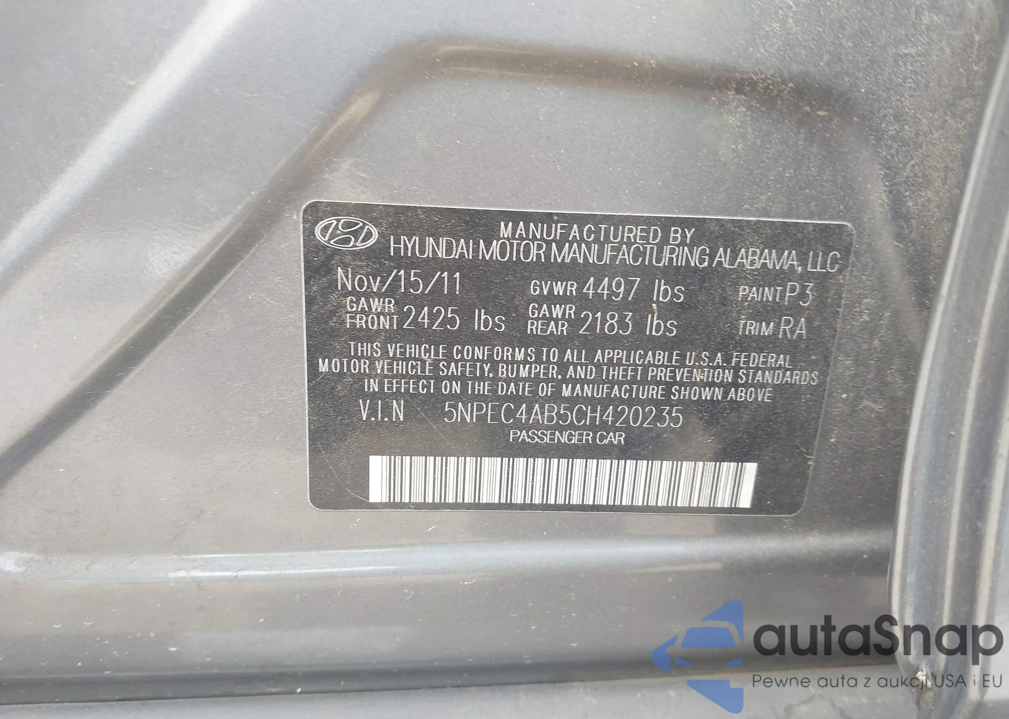 • VIN 5NMJECAE9PH163337
