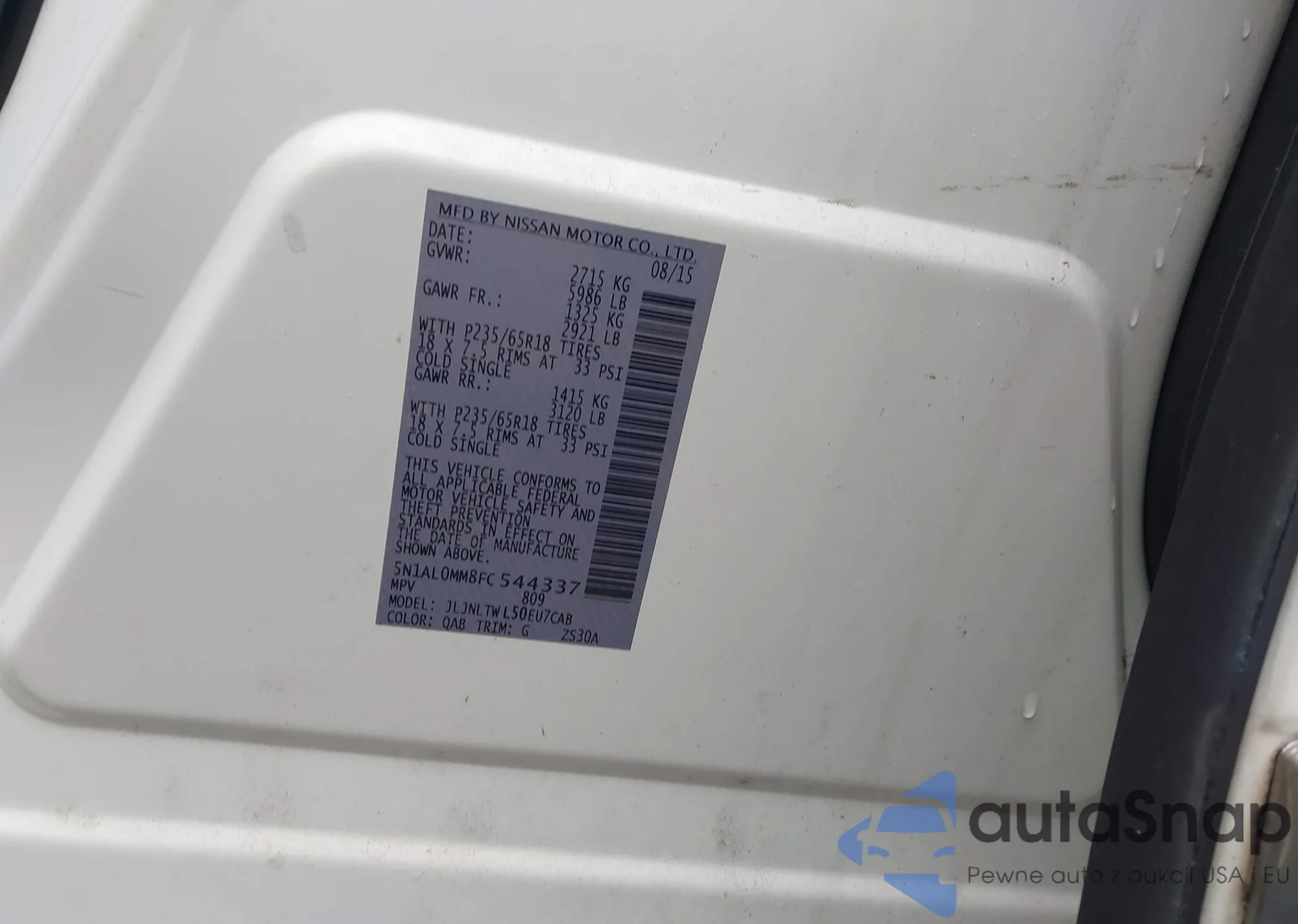 LOT: 43555445 VIN: 5N1AL0MM8FC544337