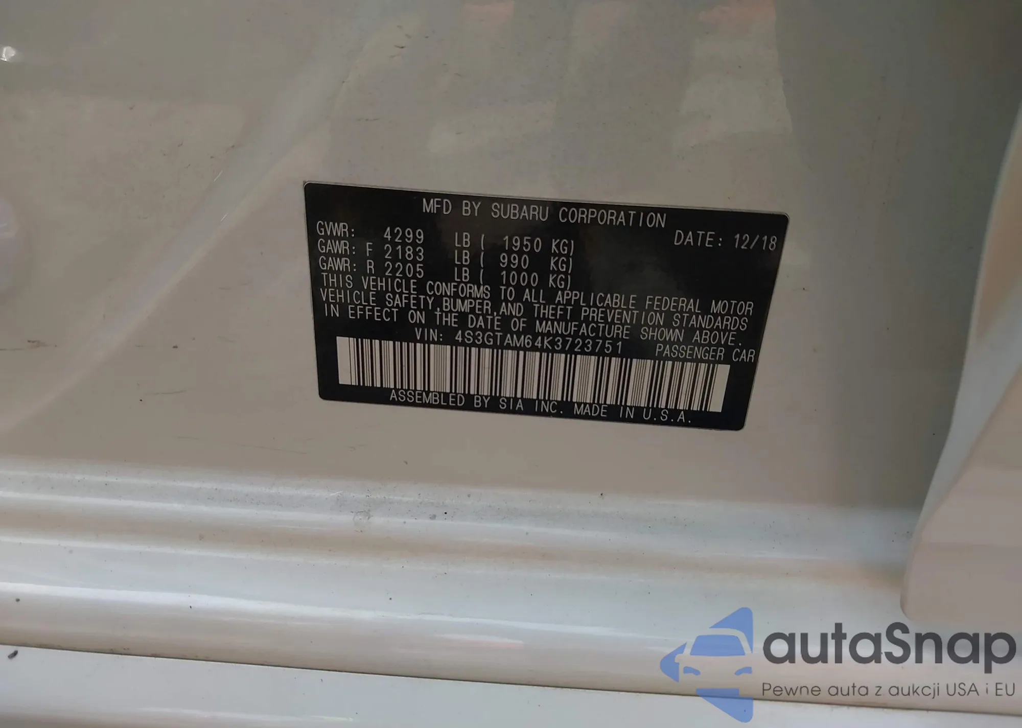 • VIN 4S3GTAM64K3723751
