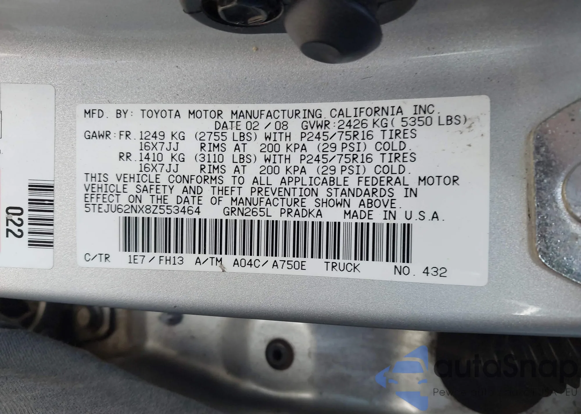 • VIN 4T1BK46KX7U517002