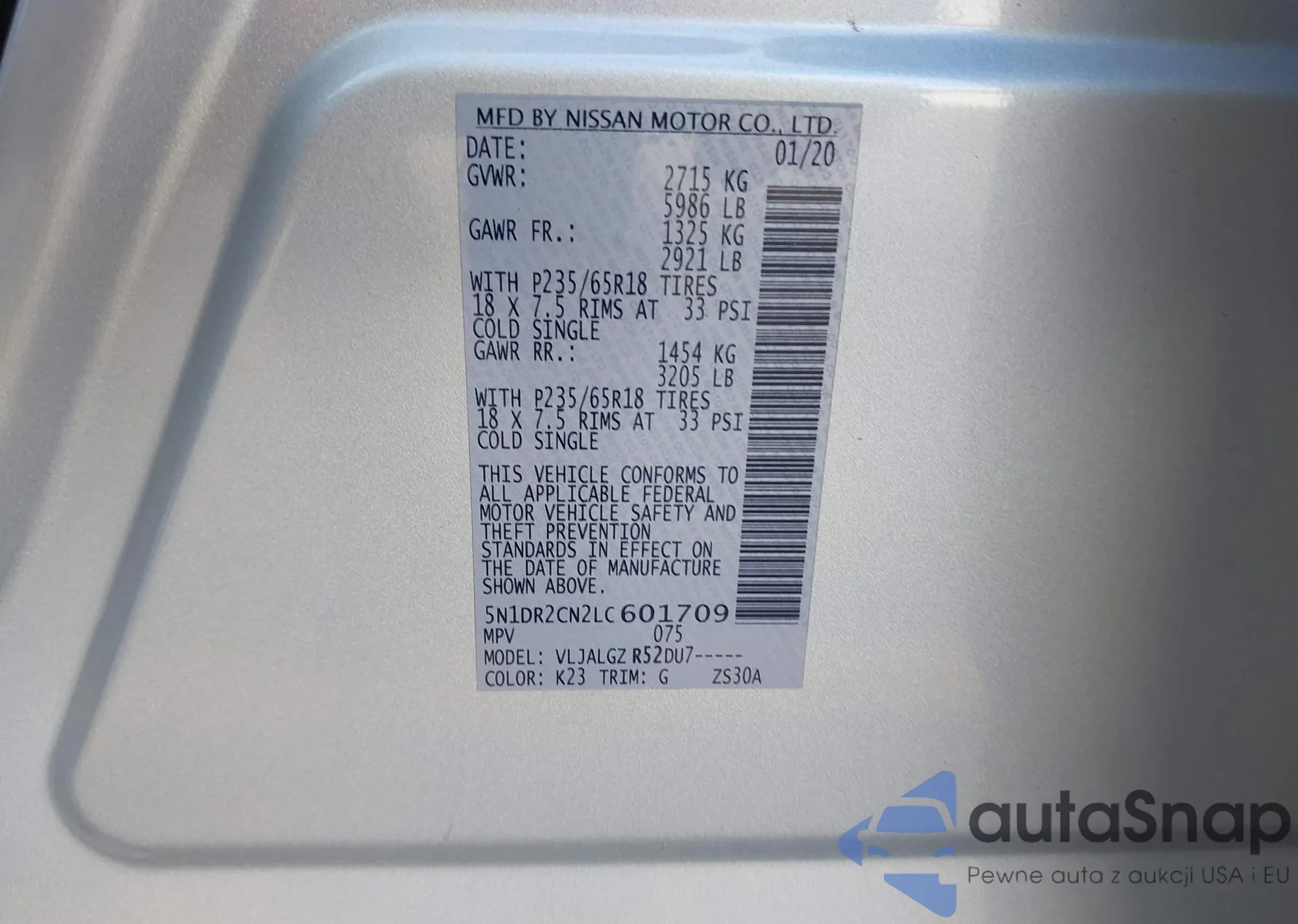 • VIN 5N1DR2CN2LC601709