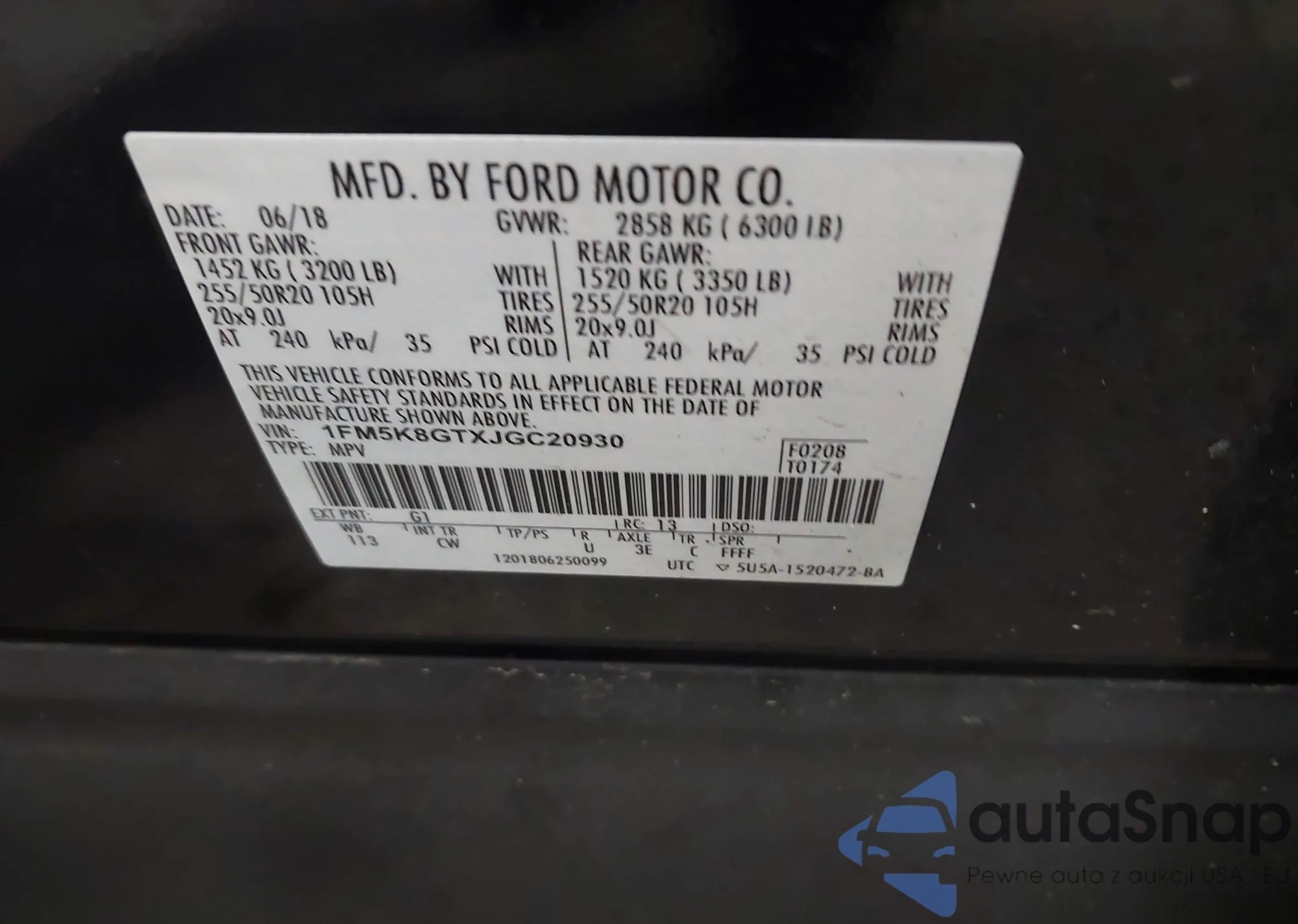 LOT: 43791512 VIN: 1FMCU9G69LUC25915