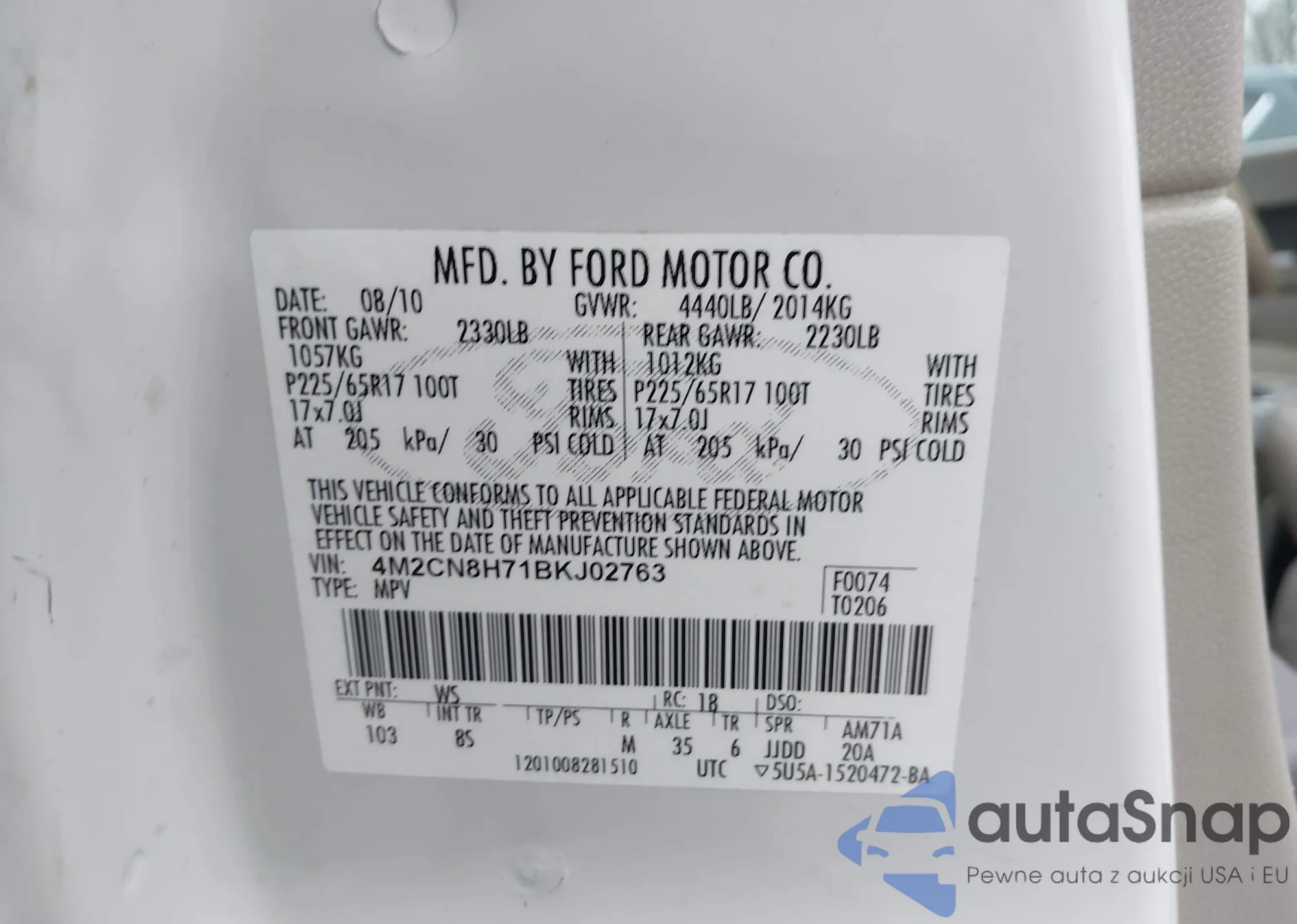 • VIN 4M2CN8H71BKJ02763