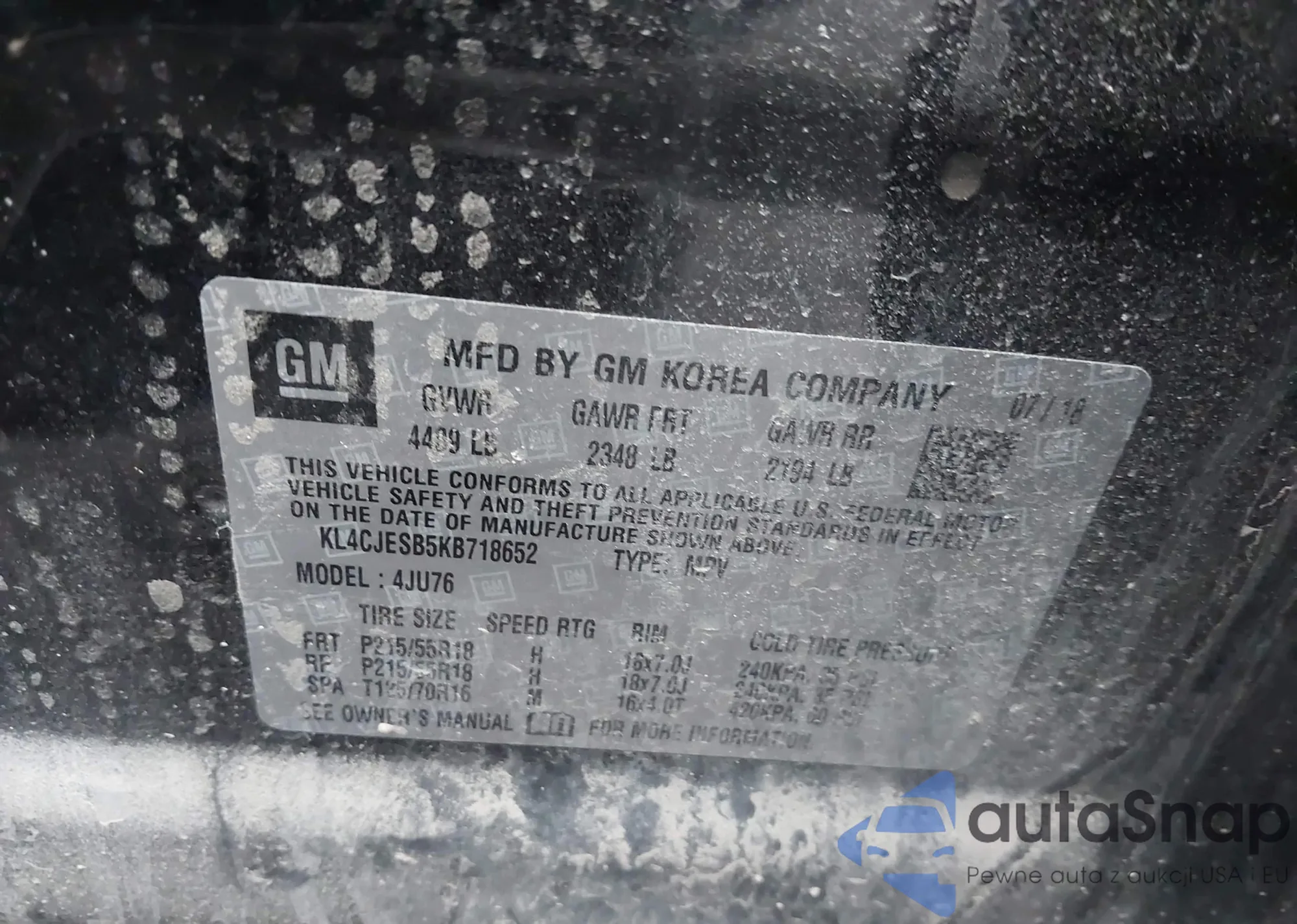 • VIN KL4CJESB5KB718652