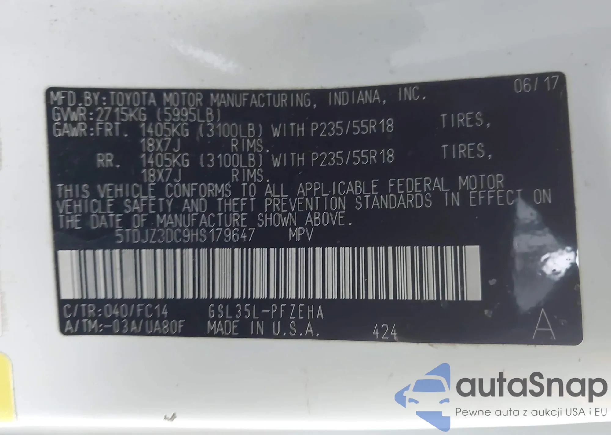 • VIN 5TDJZ3DC9HS179647