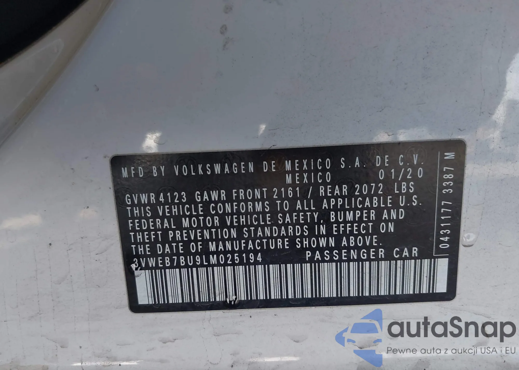• VIN 3VWEB7BU9LM025194