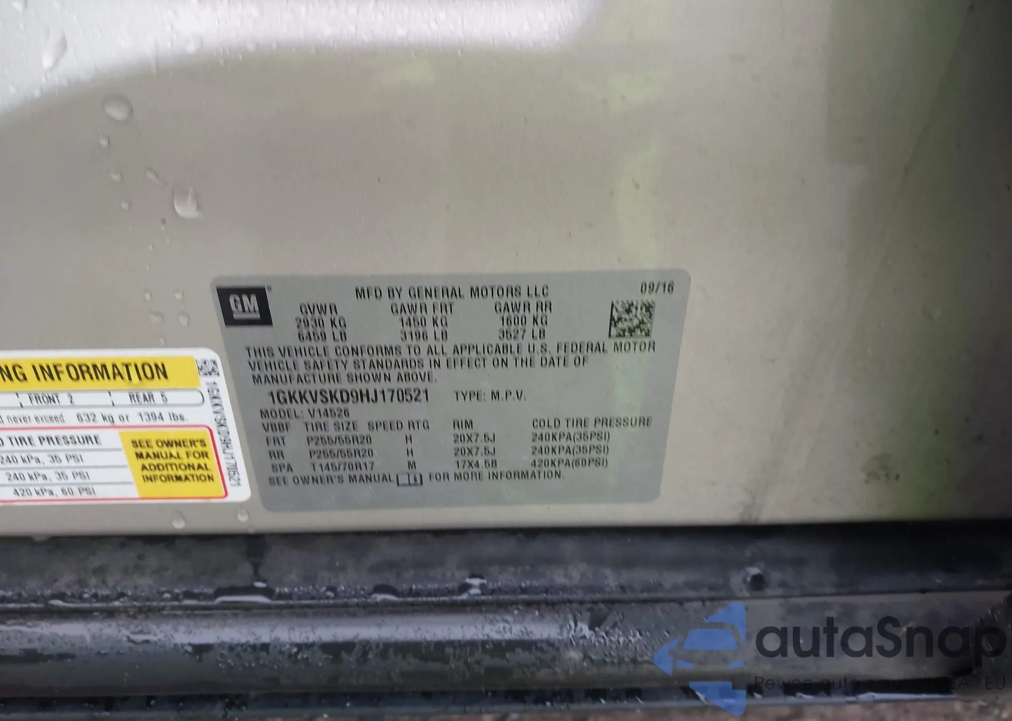 • VIN 1GKKVSKD9HJ170521