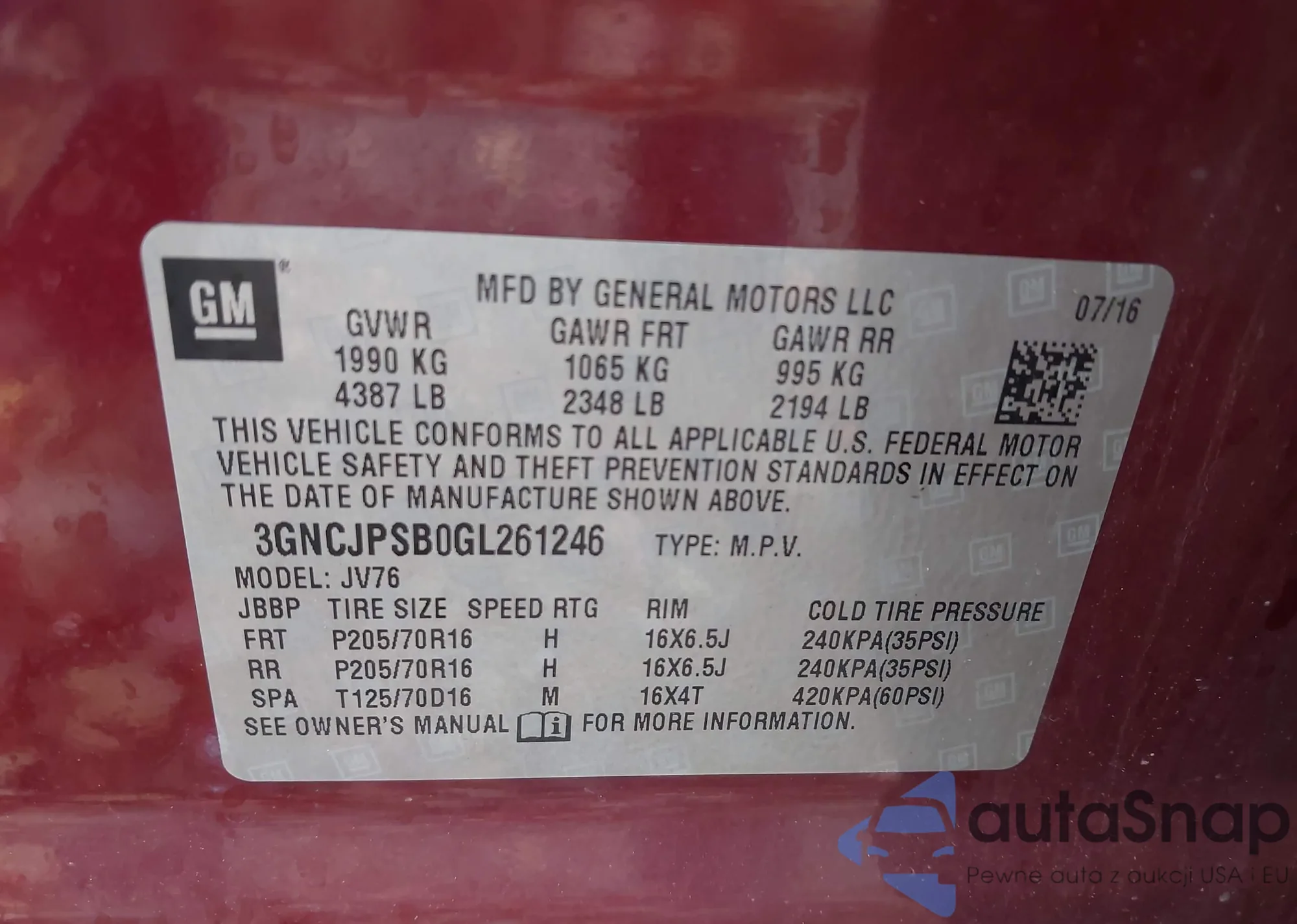 LOT: 42901241 VIN: 1N4AL3AP1GC249074