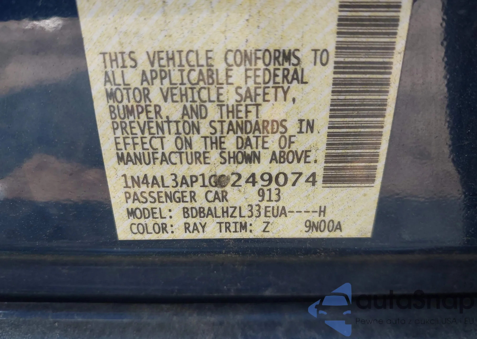 • VIN 1N4AL3AP1GC249074