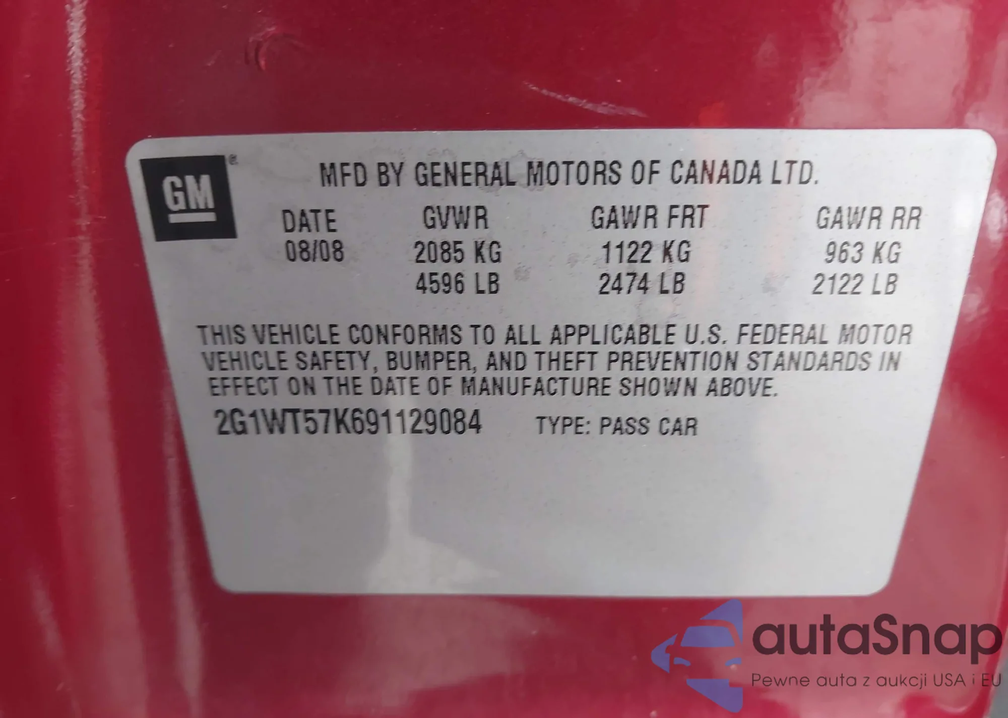 • VIN 2G1WT57K691129084
