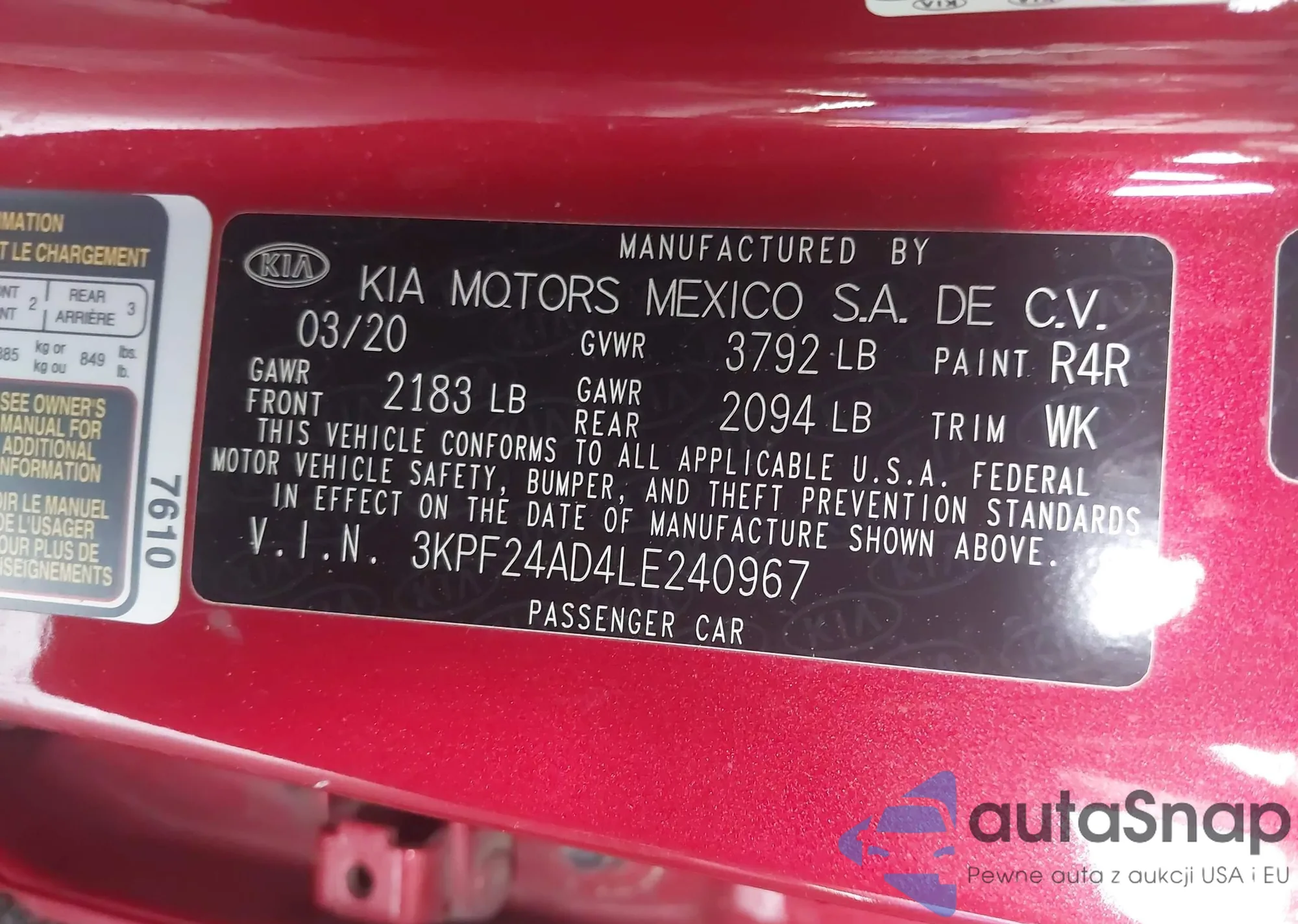 • VIN 3KPF24AD4LE240967