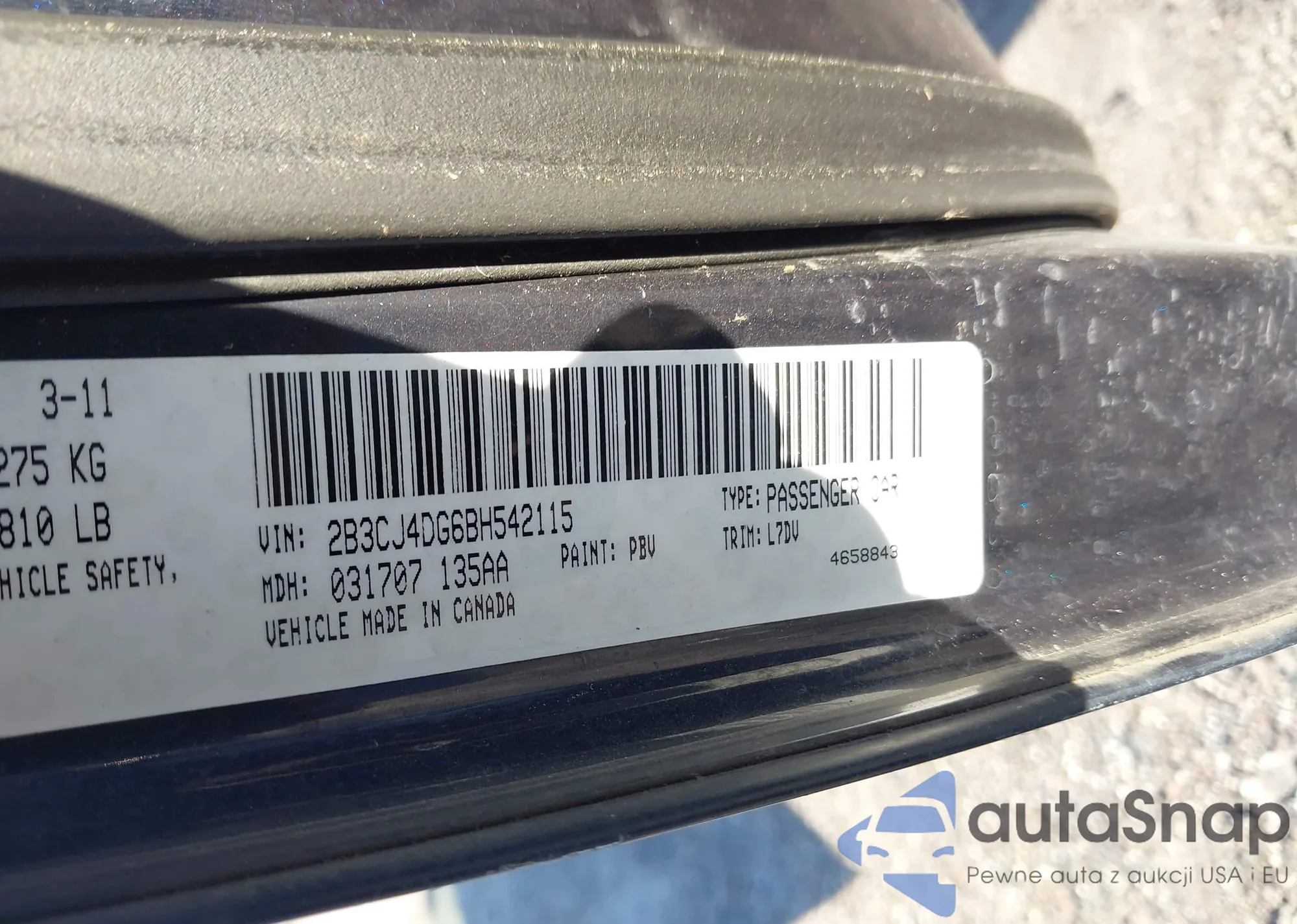 LOT: 43146916 VIN: 2B3CJ4DG6BH542115