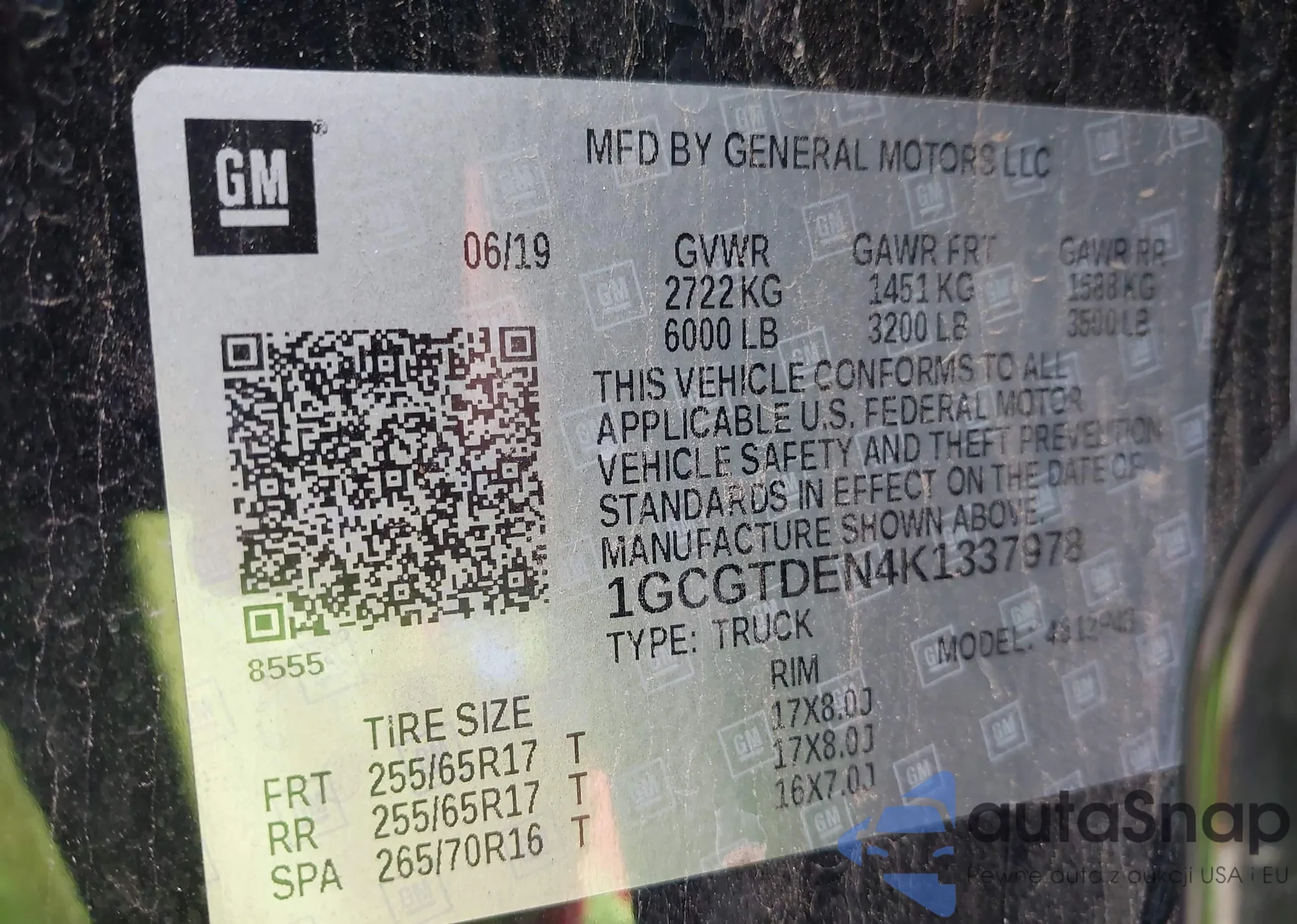 LOT: 43432677 VIN: 1GCGTDEN4K1337978